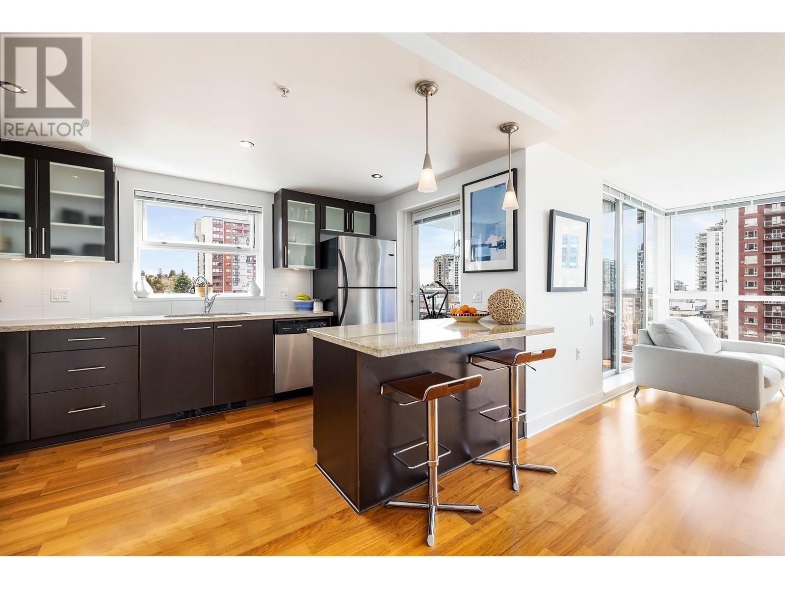 SPECTACULAR SOUTHEAST CORNER UNIT IN "THE SILVA"! Experience luxury, location, and lifestyle in this stunning two-bedroom condo in Central Lonsdale´s prestigious Silva building. Floor-to-ceiling windows showcase breathtaking panoramic views of downtown Vancouver and the North Shore Mountains, flooding the open-concept living space with natural light. Enjoy a gourmet kitchen with granite countertops, stainless steel appliances, and ample storage, plus in-suite laundry for convenience. Built for sustainability, The Silva was Canada´s first LEED-certified residential building, setting the standard for high-performance, eco-friendly living. Exclusive amenities include secure parking, storage, a fitness center, party room, guest suite, and bike room. Located steps from restaurants, shops, banks, Lonsdale Quay, and transit, this rare opportunity offers unmatched convenience and elegance. Don't miss out! [OPEN HOUSE Cancelled] (id:48970) Show More