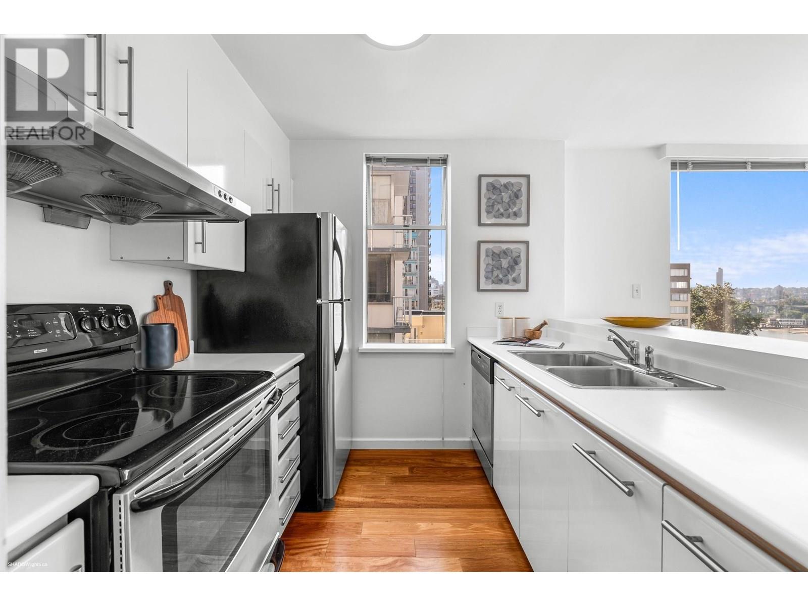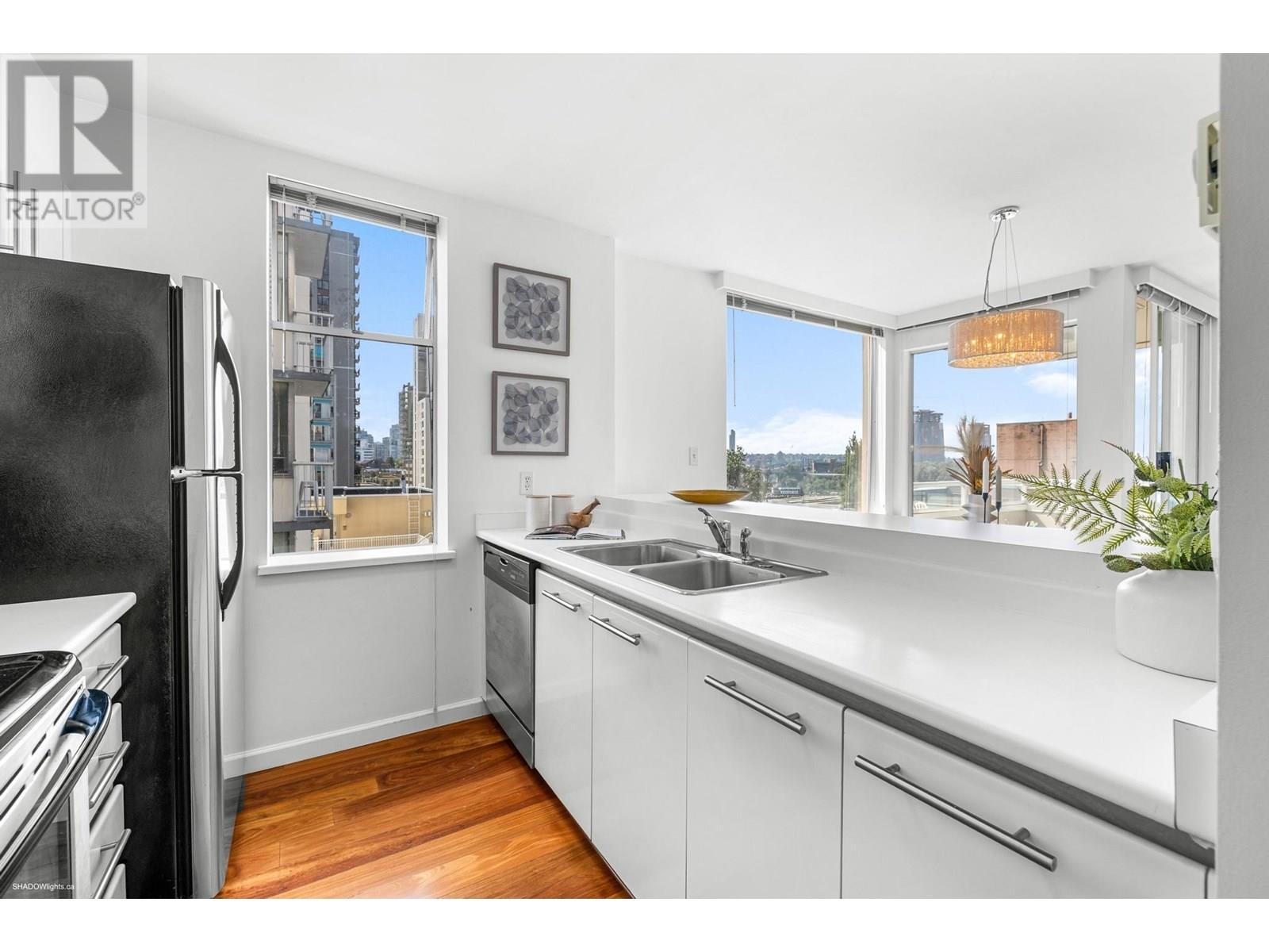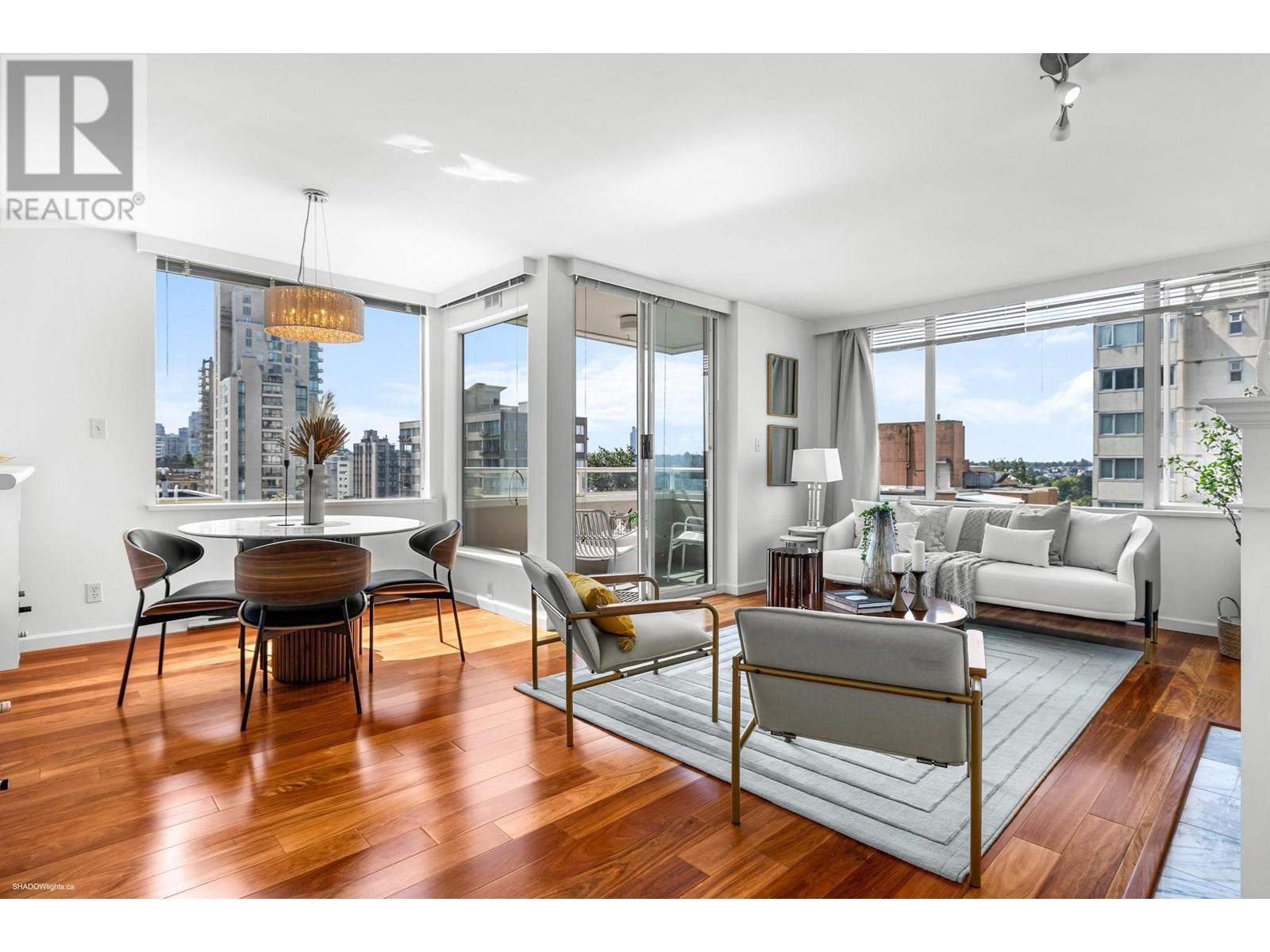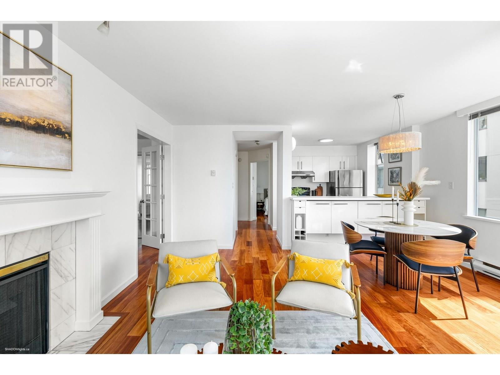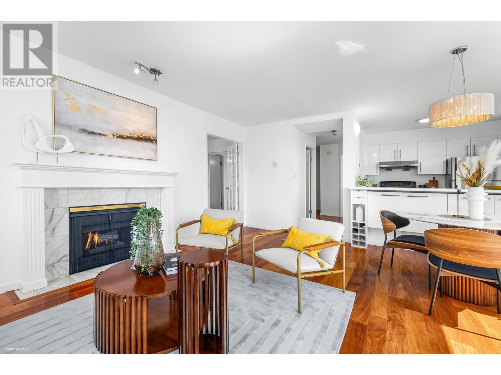 Prepare to be wowed by jaw-dropping, panoramic views from this stunning 2-bed, 2-bath corner suite in Harwood House. With prime SW exposure, this home captures incredible sunsets from every angle-whether you're on the 9x5 balcony, entertaining in the spacious living area, or cooking in the open-concept kitchen with S/S appliances. Floor-to-ceiling windows flood the space with natural light and frame the views, while hardwood floors, a cozy gas fireplace, and French doors to the primary bedroom add timeless charm. Smartly separated for privacy, the bedrooms include a primary with walk-in closet & ensuite. Just steps from Sunset Beach, the Seawall, and vibrant Davie Village, this is more than a home-it´s your front-row seat to stunning sunsets & waterfront living! (id:48970) Show More