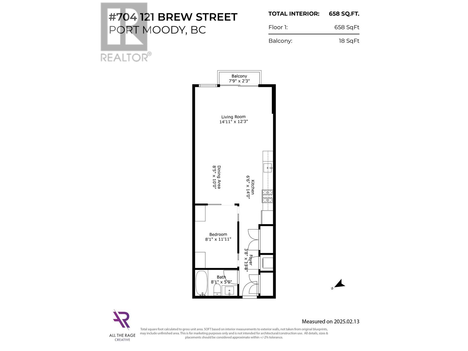 - Area 658 sq ft