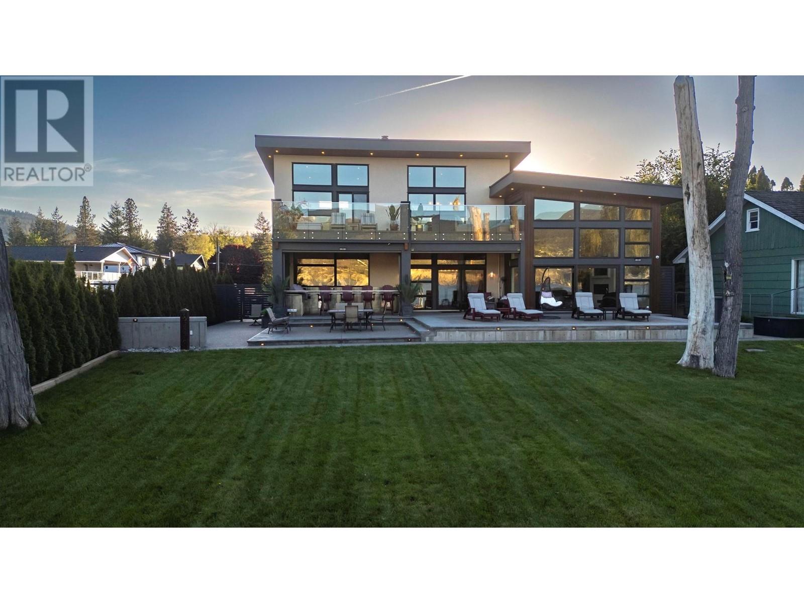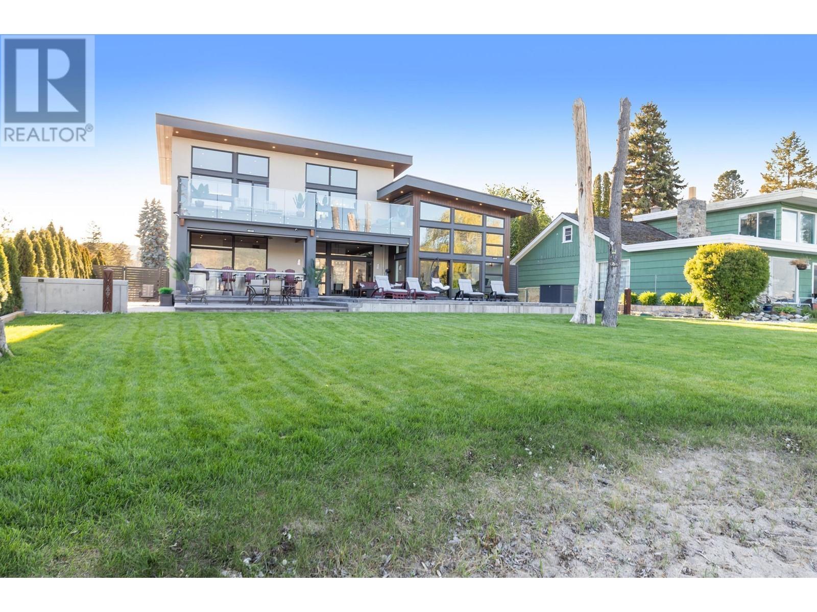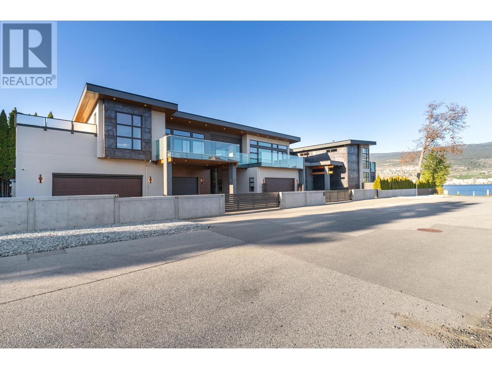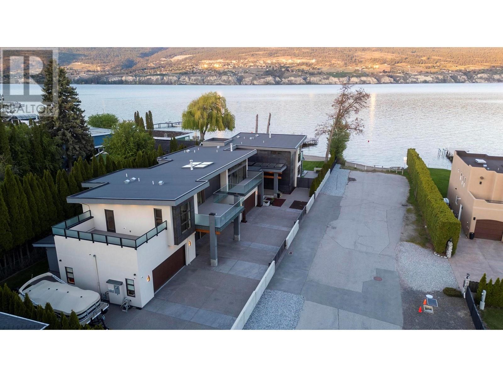 Indulge in unparalleled luxury at this waterfront estate in Summerland's prestigious Trout Creek enclave. Crafted with meticulous attention to detail in 2019, this residence rests on a 0.40-acre lot with 75 feet of lakeshore frontage. With over 5,200 square feet of living space, including a 4,300-square-foot main residence with three bedrooms and four bathrooms, plus a 952-square-foot family wing, this is sizeable lakeshore residence. Seamlessly blending indoor and outdoor living, enjoy 1,510 square feet of spacious deck space. With over 1,900 square feet of garage space and room for 5+ cars, plus boat/RV parking, rare lakeshore parking is offered. Modern conveniences like an elevator, radiant heating, wine closet, and porcelain plank floors elevate luxury living. The chef's kitchen transitions to an outdoor kitchen/lounge area, ideal for entertainment space. The private master suite boasts a large walk-in closet and ensuite with a steam shower. Built with ICF foundations, 400 amp servicing, and commercial-grade water filtration, quality is paramount through every component of this 2019-build. Outside, enjoy a concrete deck, grassed backyard, sandy beach, full dock with LED solar lights, and boat tie-downs. From interiors to outdoor spaces, this estate offers an irreplaceable lakeside lifestyle of elegance and comfort in one of the most prestigious, high value areas in the Okanagan. (id:48970) Show More