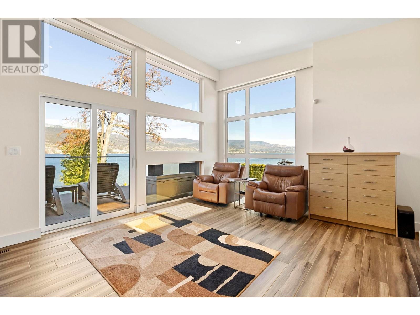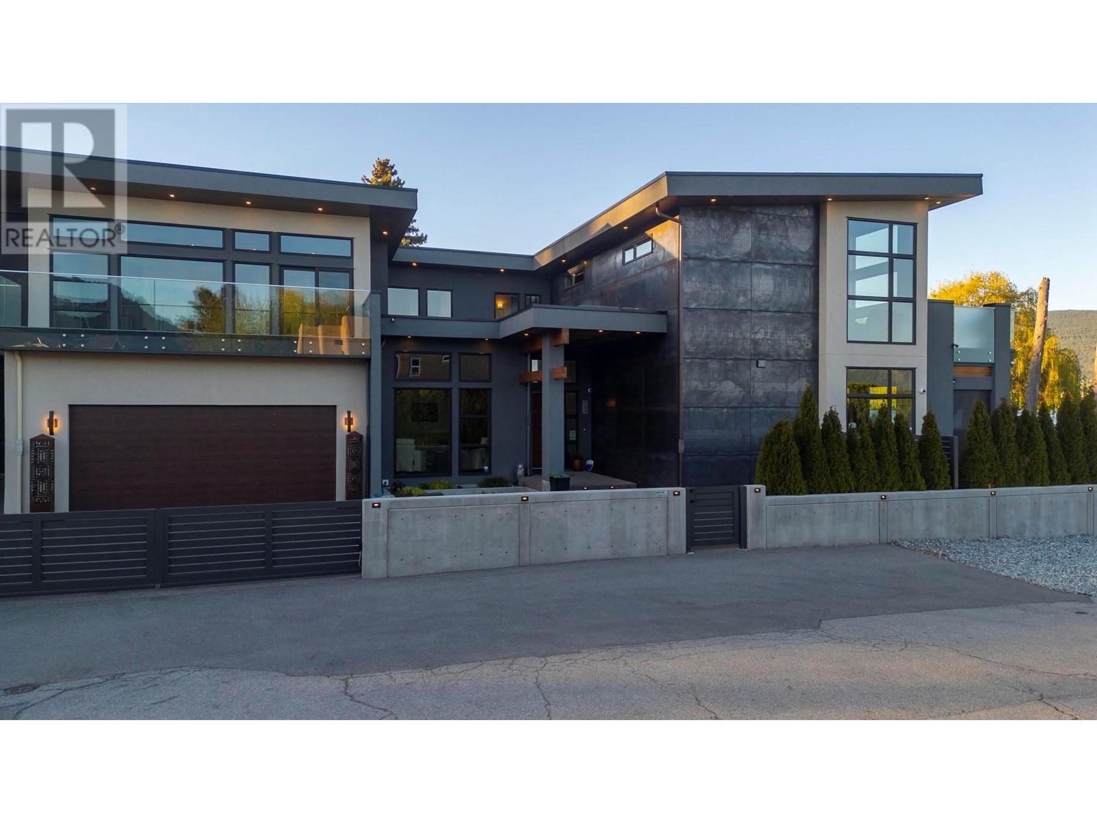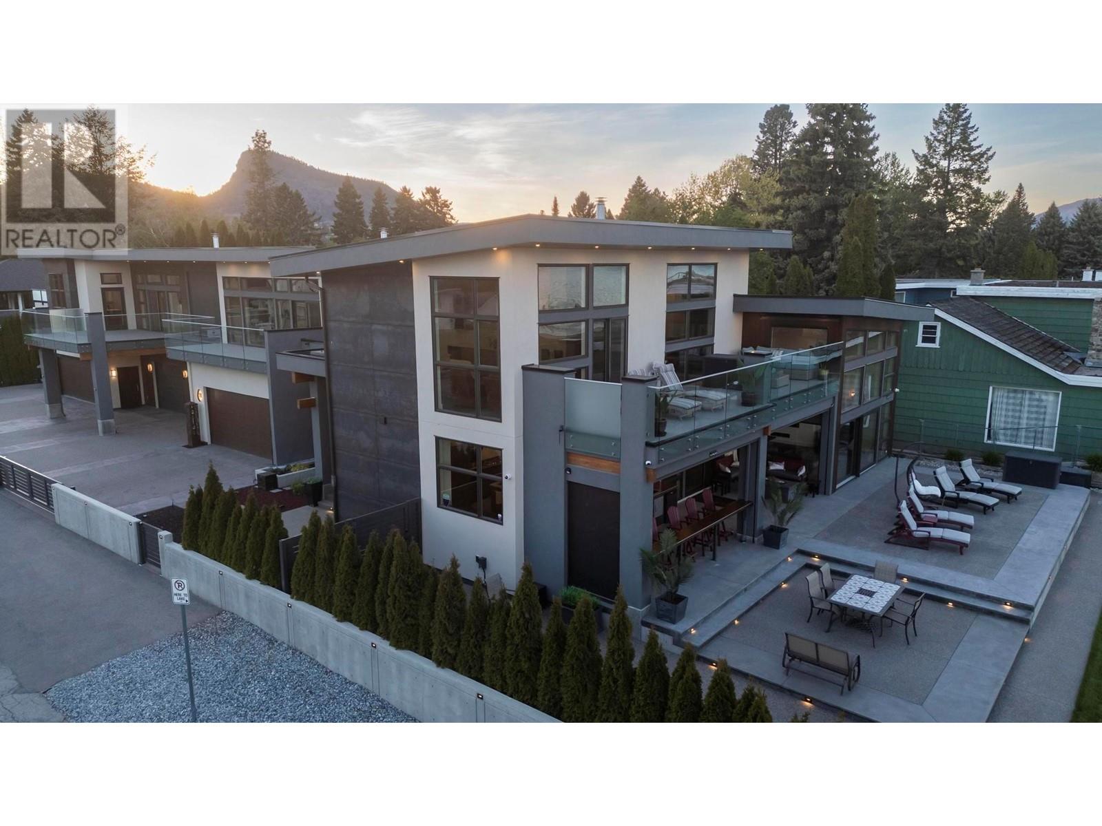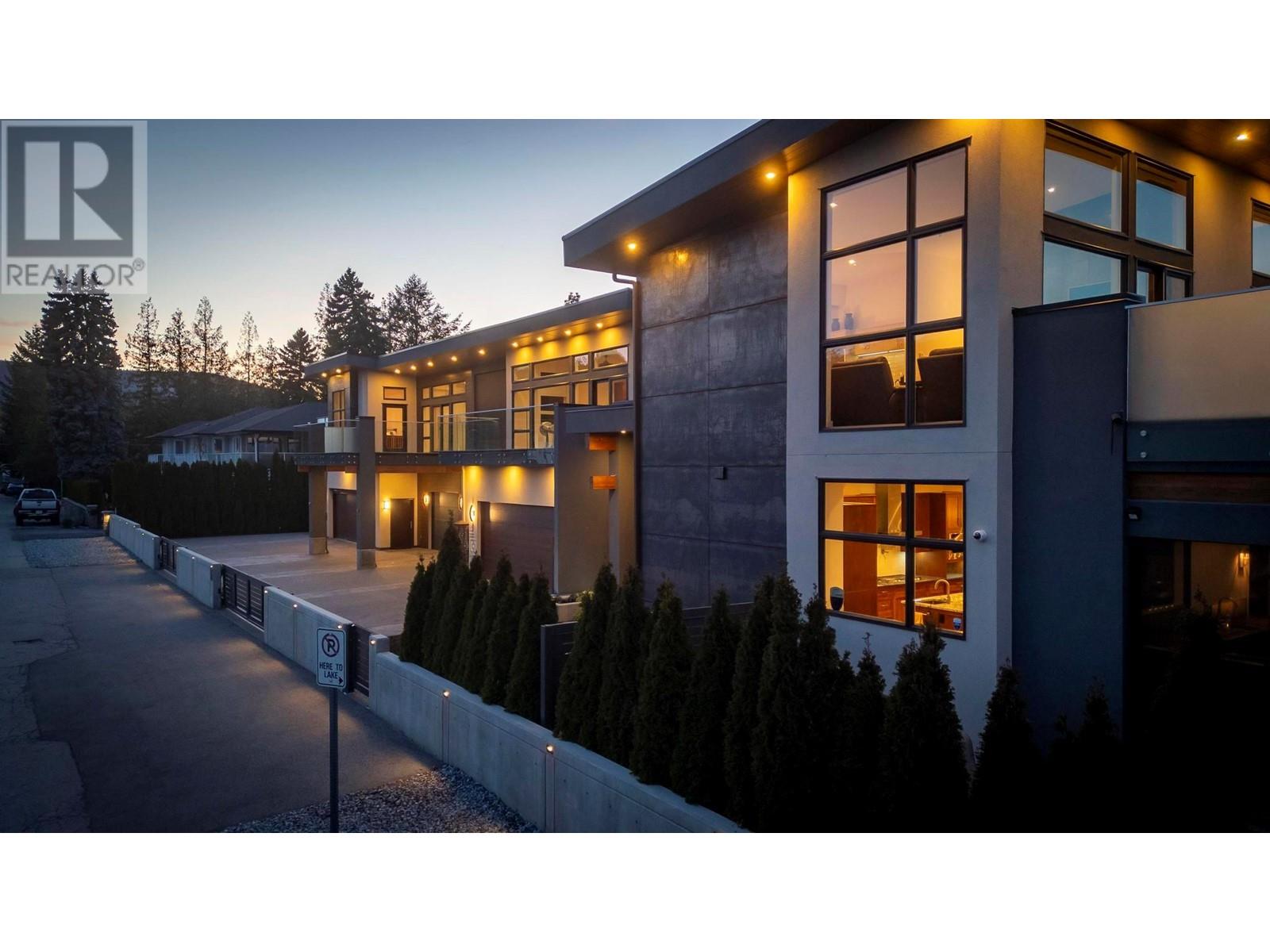 Indulge in unparalleled luxury at this waterfront estate in Summerland's prestigious Trout Creek enclave. Crafted with meticulous attention to detail in 2019, this residence rests on a 0.40-acre lot with 75 feet of lakeshore frontage. With over 5,200 square feet of living space, including a 4,300-square-foot main residence with three bedrooms and four bathrooms, plus a 952-square-foot family wing, this is sizeable lakeshore residence. Seamlessly blending indoor and outdoor living, enjoy 1,510 square feet of spacious deck space. With over 1,900 square feet of garage space and room for 5+ cars, plus boat/RV parking, rare lakeshore parking is offered. Modern conveniences like an elevator, radiant heating, wine closet, and porcelain plank floors elevate luxury living. The chef's kitchen transitions to an outdoor kitchen/lounge area, ideal for entertainment space. The private master suite boasts a large walk-in closet and ensuite with a steam shower. Built with ICF foundations, 400 amp servicing, and commercial-grade water filtration, quality is paramount through every component of this 2019-build. Outside, enjoy a concrete deck, grassed backyard, sandy beach, full dock with LED solar lights, and boat tie-downs. From interiors to outdoor spaces, this estate offers an irreplaceable lakeside lifestyle of elegance and comfort in one of the most prestigious, high value areas in the Okanagan. (id:48970) Show More