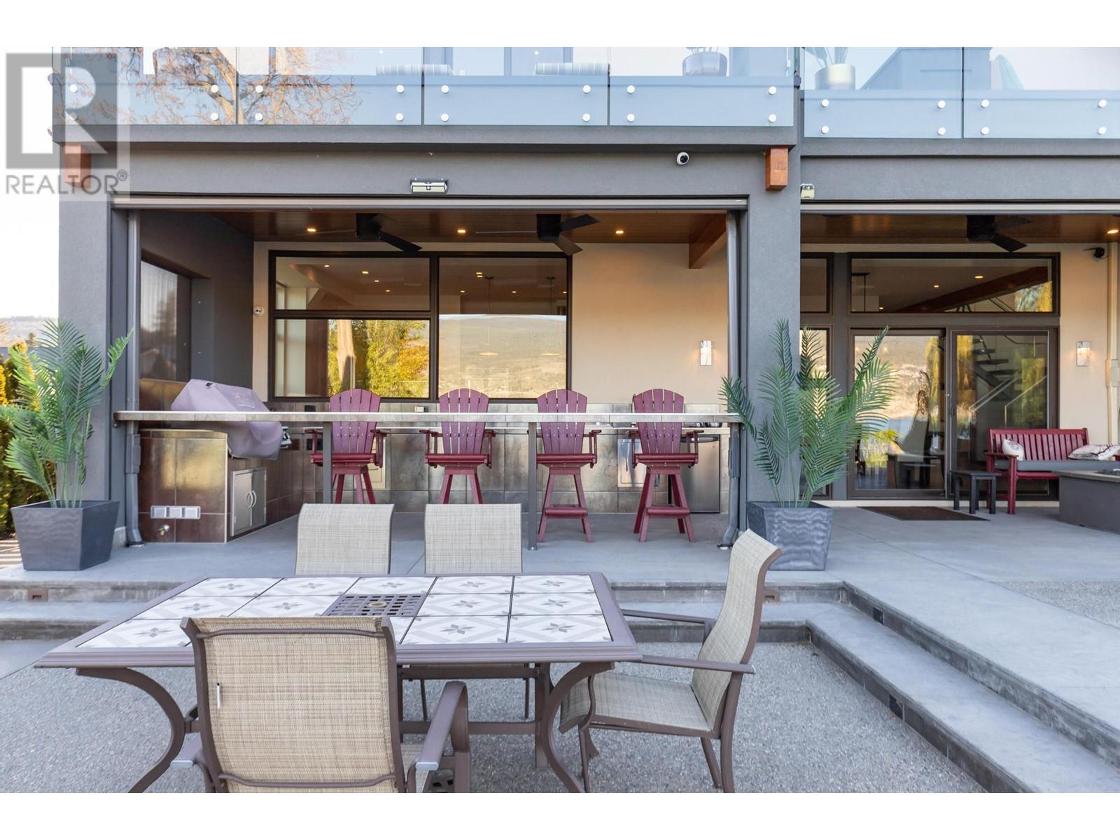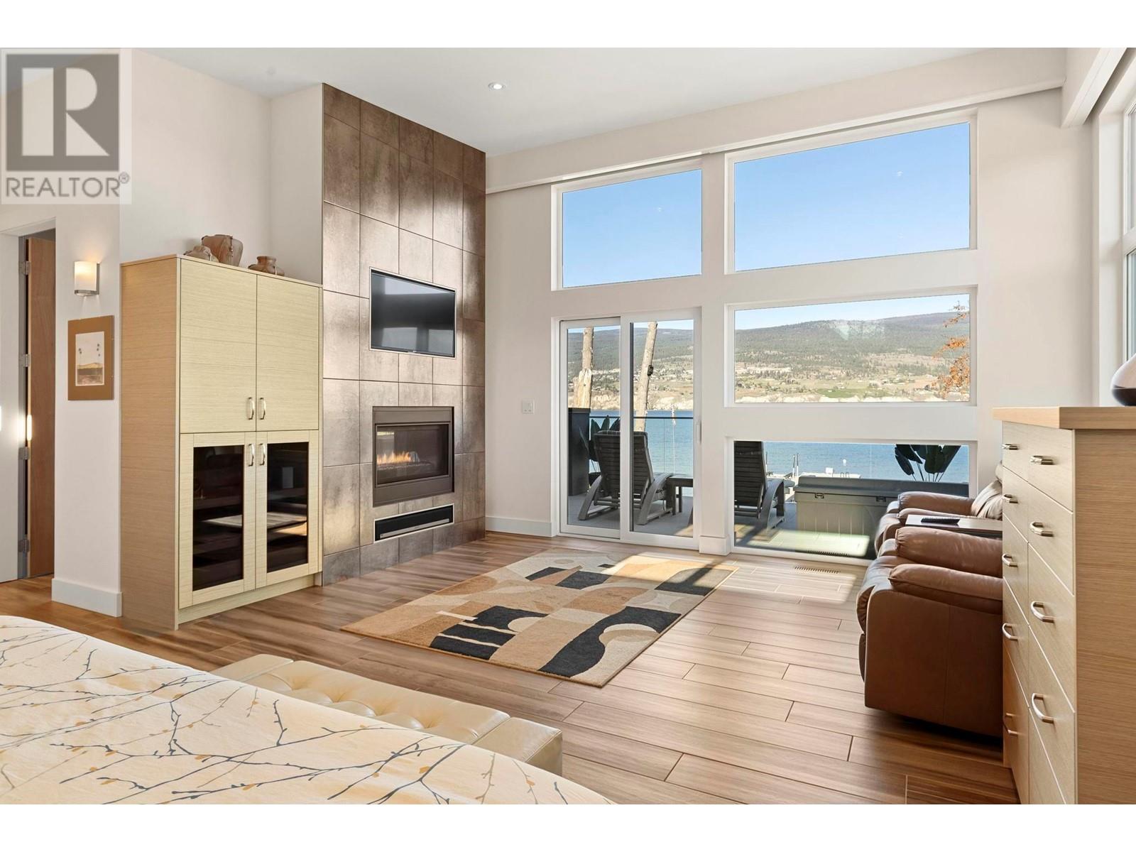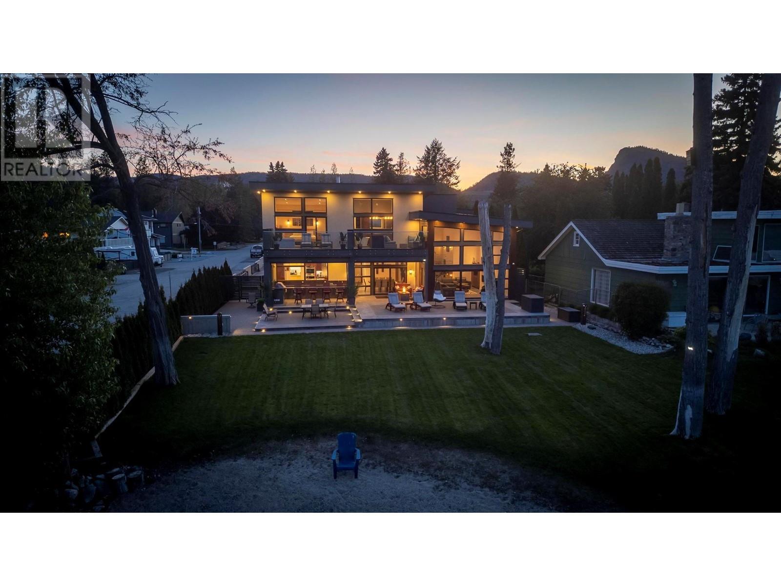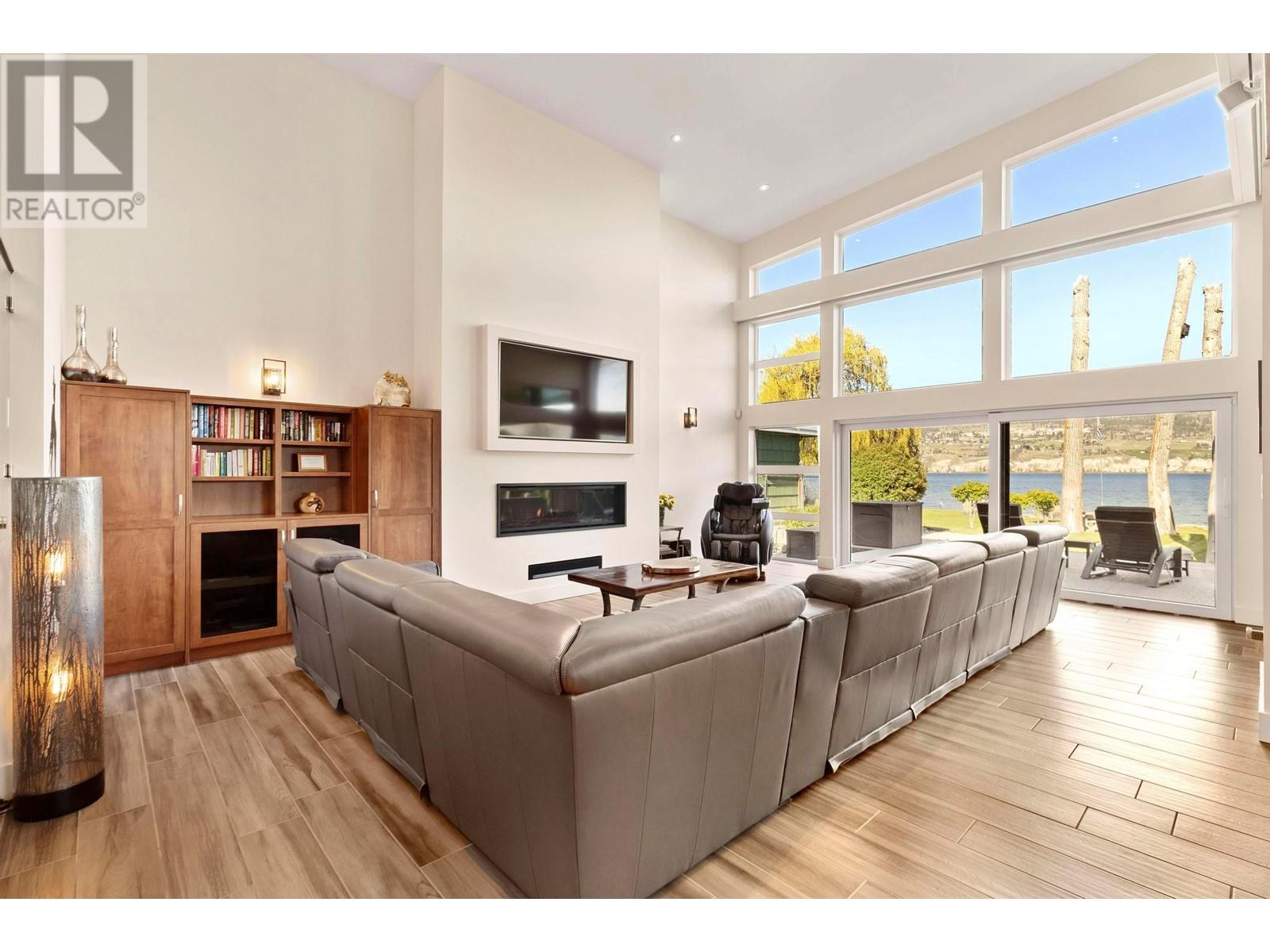 Indulge in unparalleled luxury at this waterfront estate in Summerland's prestigious Trout Creek enclave. Crafted with meticulous attention to detail in 2019, this residence rests on a 0.40-acre lot with 75 feet of lakeshore frontage. With over 5,200 square feet of living space, including a 4,300-square-foot main residence with three bedrooms and four bathrooms, plus a 952-square-foot family wing, this is sizeable lakeshore residence. Seamlessly blending indoor and outdoor living, enjoy 1,510 square feet of spacious deck space. With over 1,900 square feet of garage space and room for 5+ cars, plus boat/RV parking, rare lakeshore parking is offered. Modern conveniences like an elevator, radiant heating, wine closet, and porcelain plank floors elevate luxury living. The chef's kitchen transitions to an outdoor kitchen/lounge area, ideal for entertainment space. The private master suite boasts a large walk-in closet and ensuite with a steam shower. Built with ICF foundations, 400 amp servicing, and commercial-grade water filtration, quality is paramount through every component of this 2019-build. Outside, enjoy a concrete deck, grassed backyard, sandy beach, full dock with LED solar lights, and boat tie-downs. From interiors to outdoor spaces, this estate offers an irreplaceable lakeside lifestyle of elegance and comfort in one of the most prestigious, high value areas in the Okanagan. (id:48970) Show More