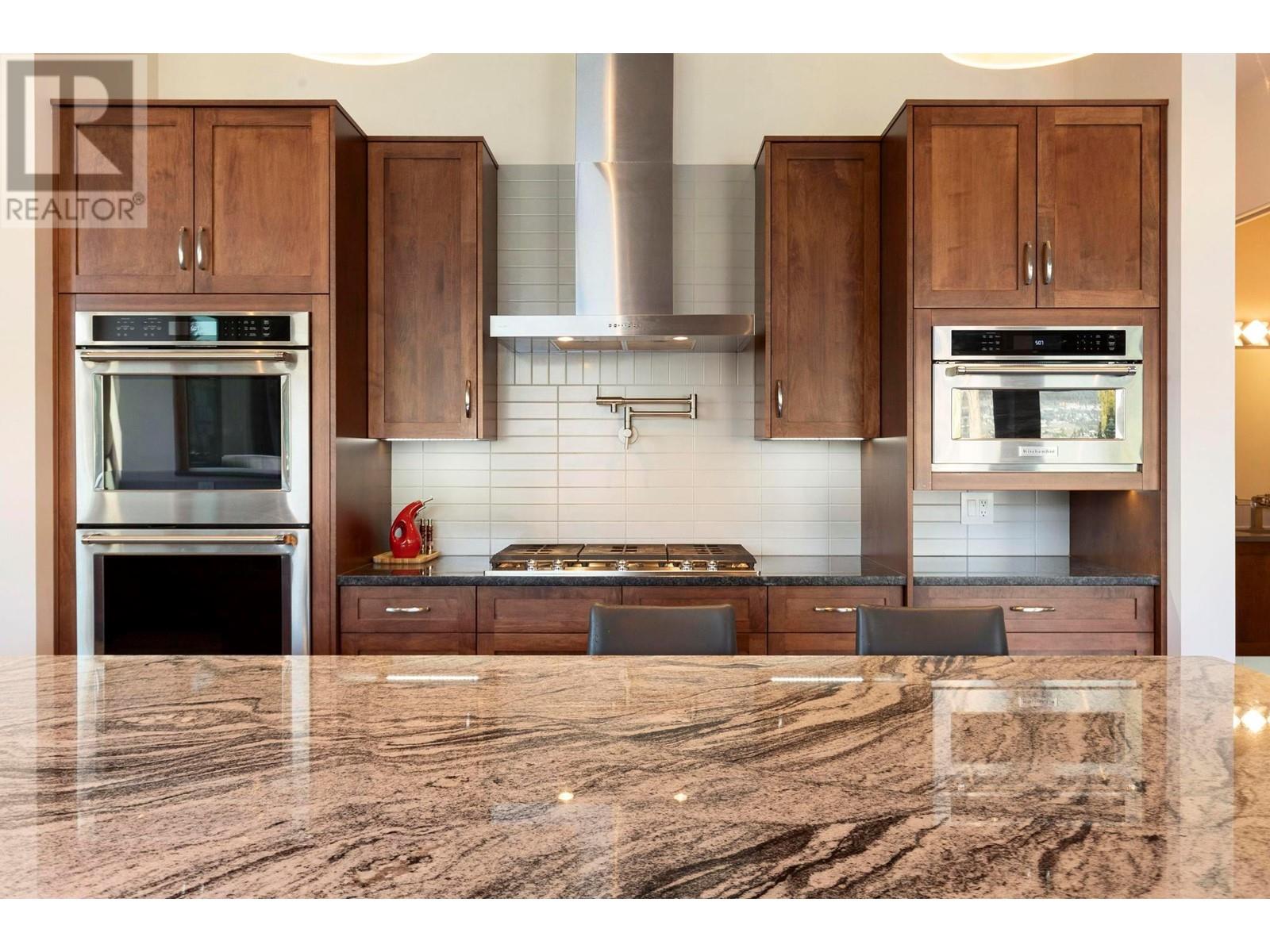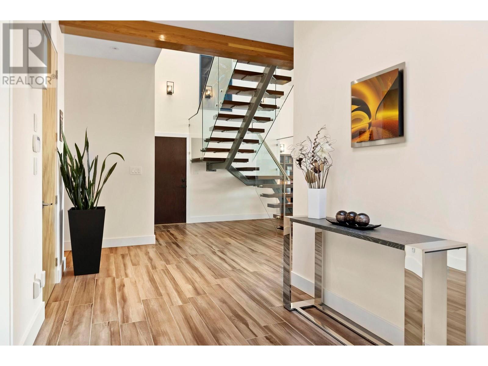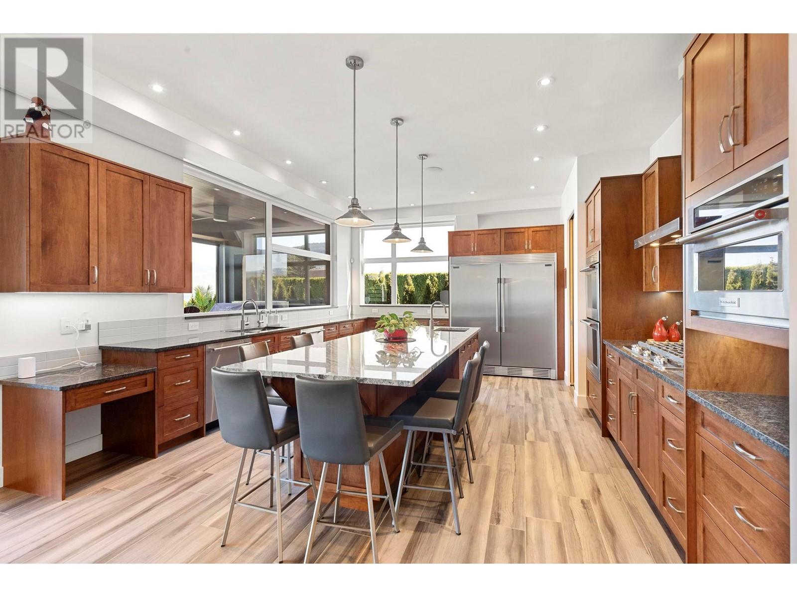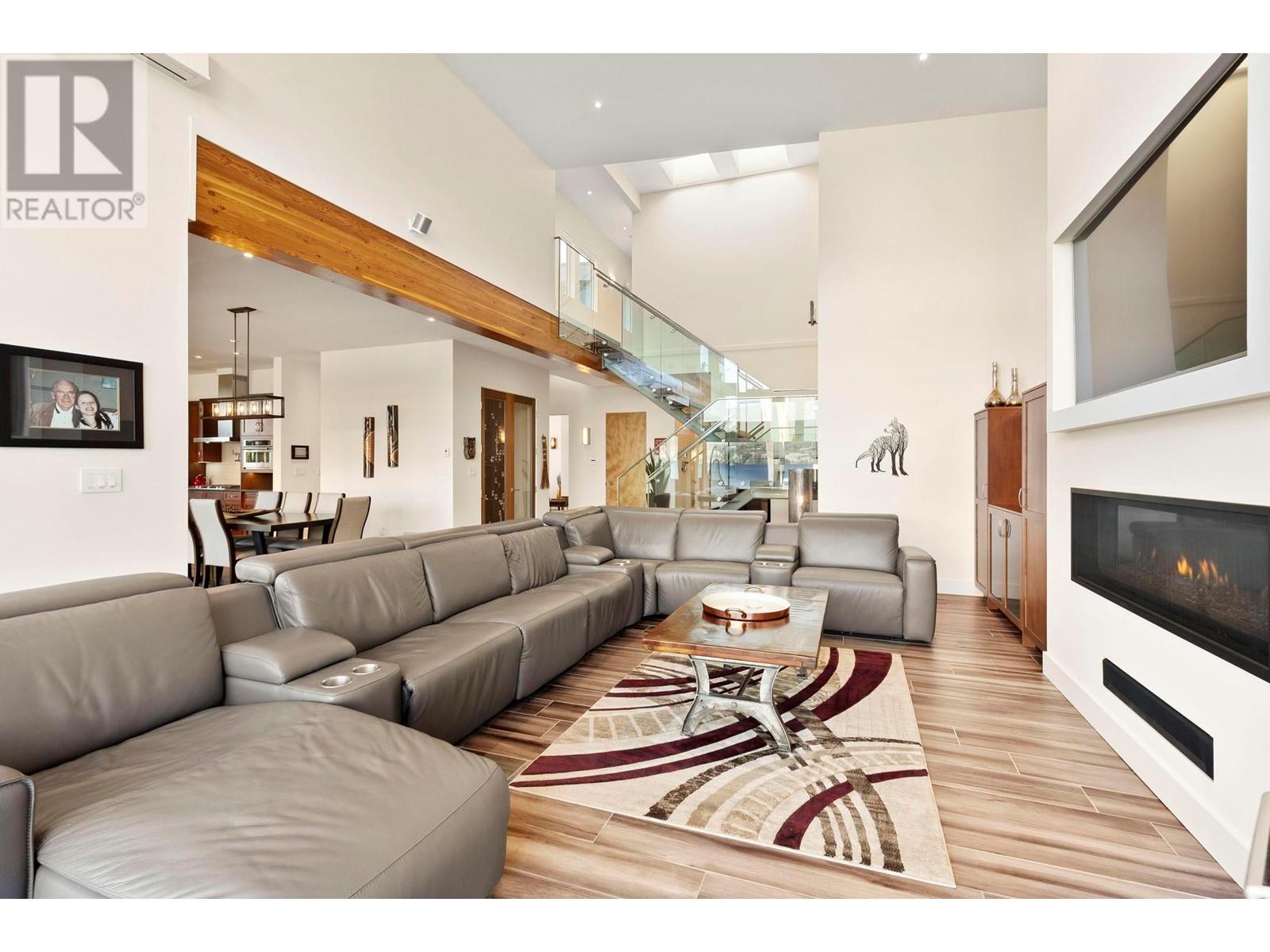 Indulge in unparalleled luxury at this waterfront estate in Summerland's prestigious Trout Creek enclave. Crafted with meticulous attention to detail in 2019, this residence rests on a 0.40-acre lot with 75 feet of lakeshore frontage. With over 5,200 square feet of living space, including a 4,300-square-foot main residence with three bedrooms and four bathrooms, plus a 952-square-foot family wing, this is sizeable lakeshore residence. Seamlessly blending indoor and outdoor living, enjoy 1,510 square feet of spacious deck space. With over 1,900 square feet of garage space and room for 5+ cars, plus boat/RV parking, rare lakeshore parking is offered. Modern conveniences like an elevator, radiant heating, wine closet, and porcelain plank floors elevate luxury living. The chef's kitchen transitions to an outdoor kitchen/lounge area, ideal for entertainment space. The private master suite boasts a large walk-in closet and ensuite with a steam shower. Built with ICF foundations, 400 amp servicing, and commercial-grade water filtration, quality is paramount through every component of this 2019-build. Outside, enjoy a concrete deck, grassed backyard, sandy beach, full dock with LED solar lights, and boat tie-downs. From interiors to outdoor spaces, this estate offers an irreplaceable lakeside lifestyle of elegance and comfort in one of the most prestigious, high value areas in the Okanagan. (id:48970) Show More
