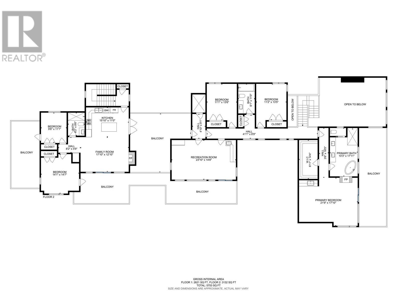 | Primary Bedroom | Second level | 21'9'' x 17'10'' |
