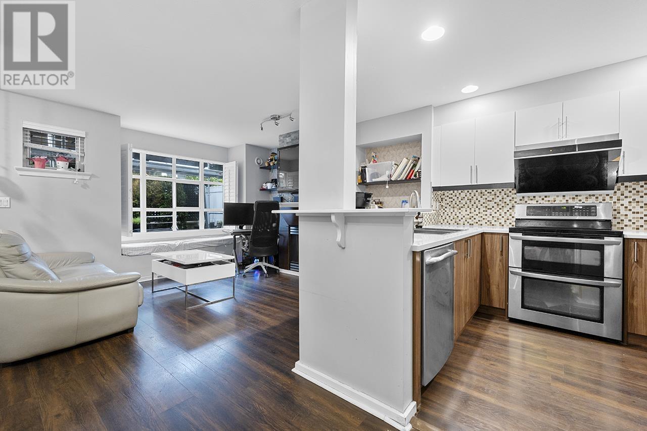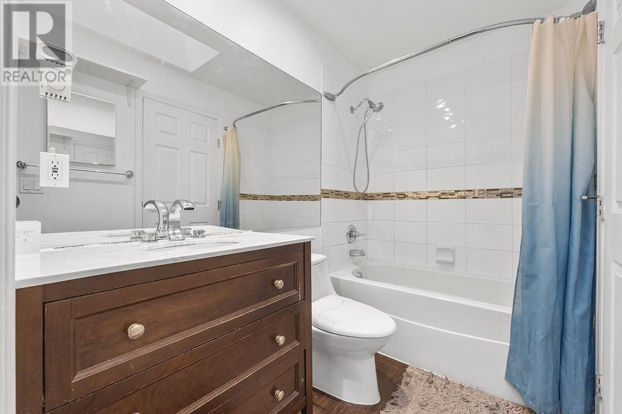 Welcome to this beautifully renovated 2-bedroom, 2-bath townhome with no neighbors above or below - offering peaceful, private living. Located in a well-managed complex with a BRAND NEW ROOF just installed! Thoughtfully updated with quartz countertops, new kitchen cabinets, double oven stove, S/S appliances, custom wood shutters, and textured laminate flooring throughout. Enjoy the charm of bay windows, a cozy gas fireplace, a skylight, and soaring 11ft vaulted ceilings in the primary bedroom with a walk-in closet. Smart layout with tons of storage. Short walk to shops, restaurants, groceries, schools, Byrne Creek Ravine Park, trails, SkyTrain, and more! Perfect time to get into the market - don´t miss this gem! Open House on SAT June 14th 2-4 pm. (id:48970) Show More
