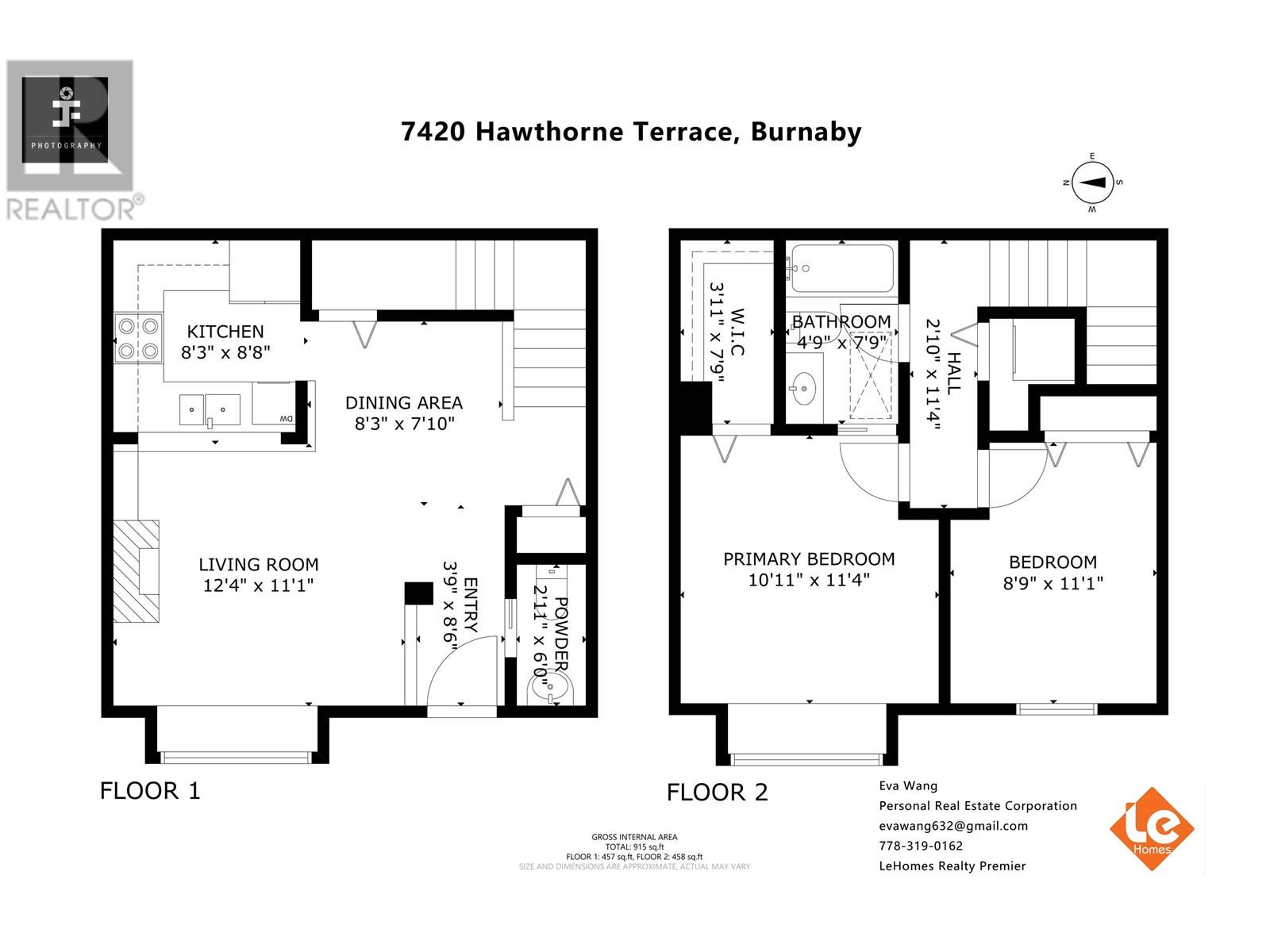 - Area 915 sq ft