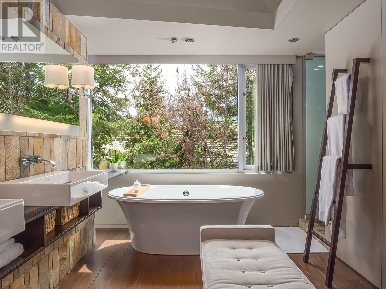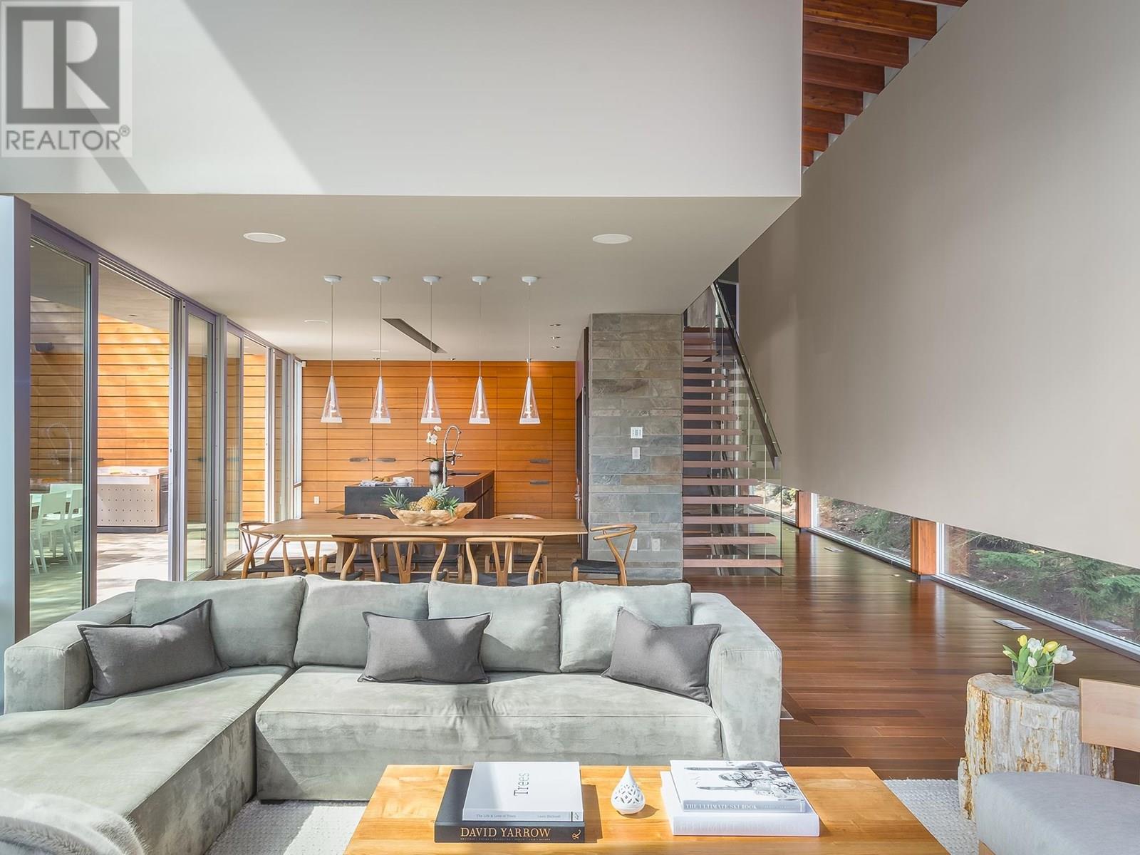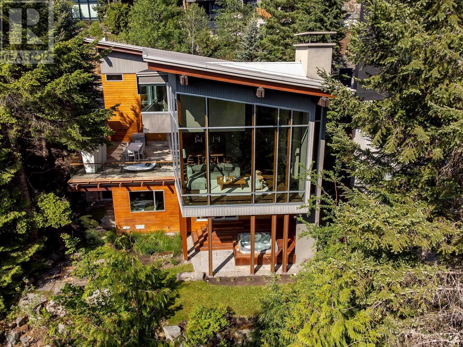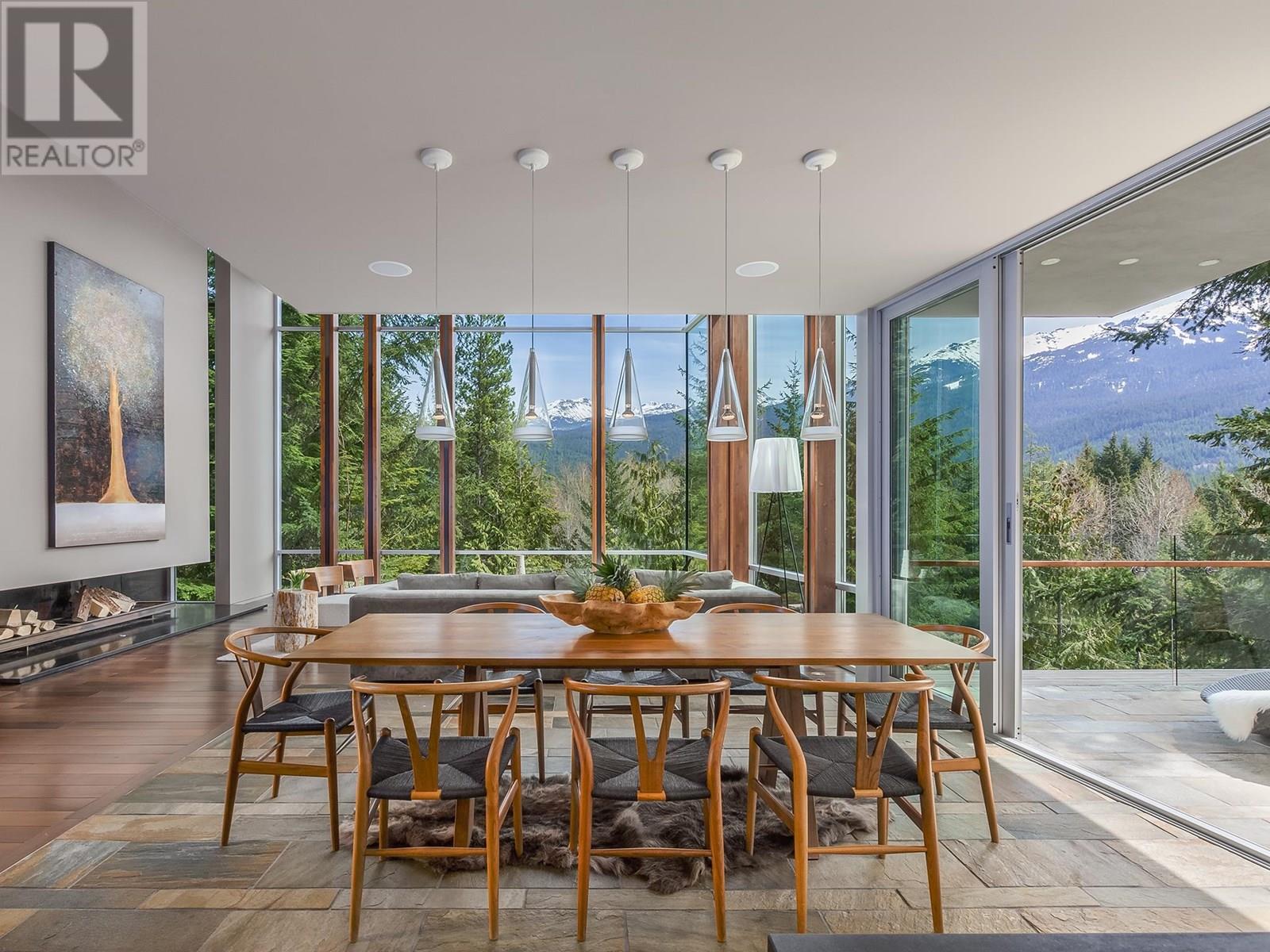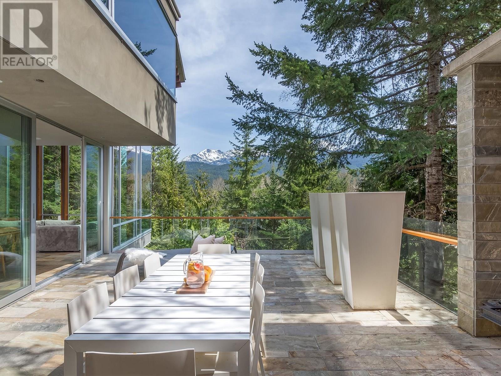 Clean, sophisticated lines capture natural surroundings and welcomes expansive panoramic mountain views through floor-to-ceiling windows that envelope the main living area, while large sliders seamlessly connect the indoors to the expansive outdoor living space with oversized gas fireplace. Providing architectural design elements throughout, this purposefully designed residence with modern comforts includes five ensuite bedrooms, family room, wine room, outdoor hot tub and firepit, ideal for hosting family and friends. Located just a few minutes´ walk to Whistler Village, lakes and trails, this stunning residence offers a rare and valuable combination of privacy, space, natural surrounds, and uninterrupted views - a true retreat with access to the magic of the mountain resort. (id:48970) Show More