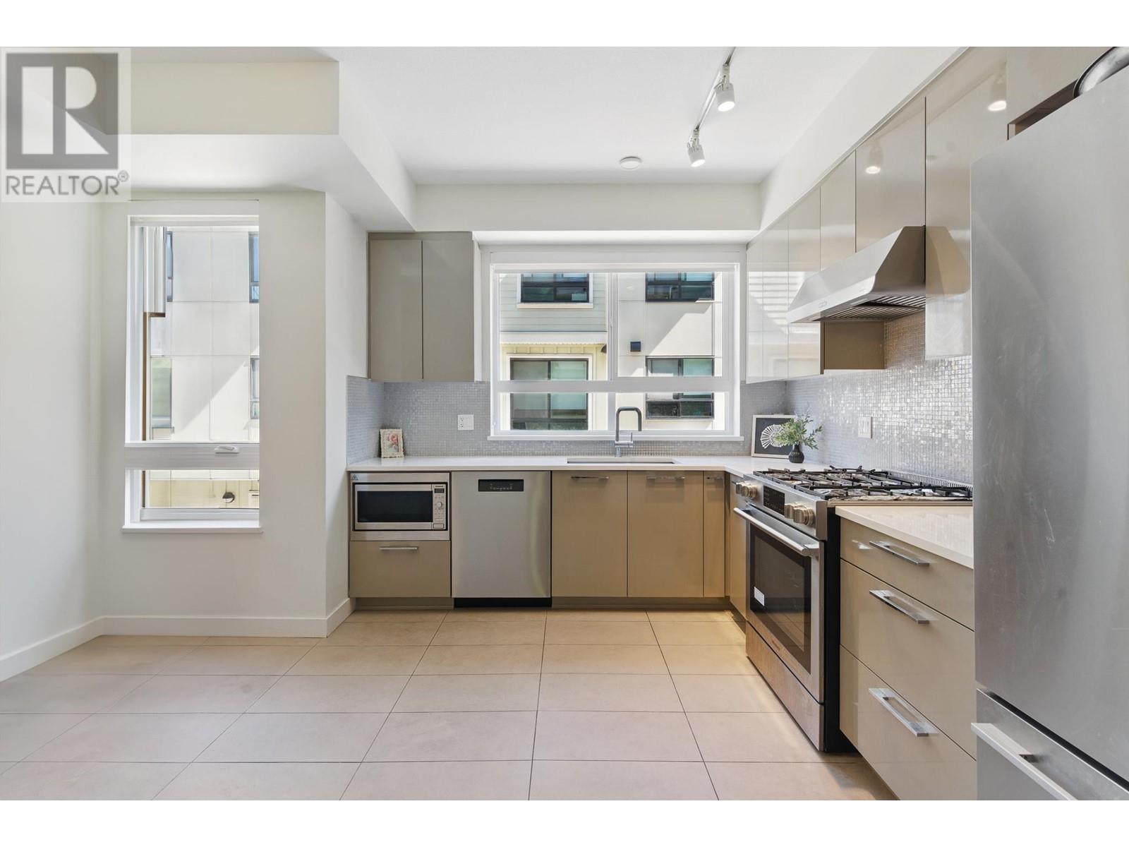 Inside unit. Welcome to PARC RIVIERA, this immaculate home offers captivating views of the river and mountains. Boasting 4 spacious bedrooms and 4 bathrooms, it features a gourmet kitchen equipped with high-end European appliances. The main floor impresses with higher ceilings and an eco-friendly geothermal heating & cooling system. A Beautiful scenic Dyke Trail and a large green park are just around the corner, residents also have the access to various of top tier amenities such as a Clubhouse, a fully equipped gym, an indoor pool. 3 Parking in total, with a 2-car tandem garage plus an additional underground stall. There are four balconies within the unit that allows more fresh air and natural sun light come inside. Open house: May 3 & May 4, Sat & Sun, 2-4pm. (id:48970) Show More