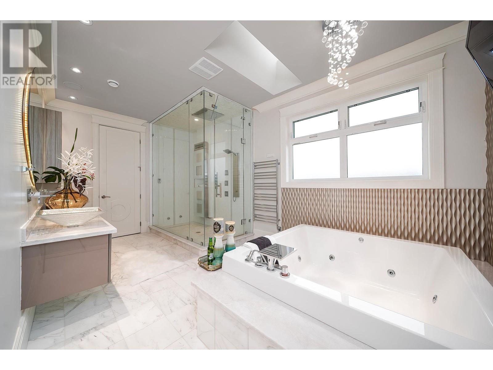 A deluxe house locates in Granville area. 3,736 square ft house with 8,230 square ft (60x138) lot. Bright and functional layout comes with many large windows. High ceiling in foyer, family room and living room. 4 bedrooms (all ensuites) upstairs. Master Bedroom has a huge bathroom with modern design, updated steam and sauna system. All kitchen cabinets, bathroom vanities and tiles directly imported from Italy. 2 kitchens with all Thermado and Bosch appliances. Air-conditioning, HRV system, radiant heat, auto sprinkler system, surveillance camera and electric gate. Excellent design in landscaping. (id:48970) Show More