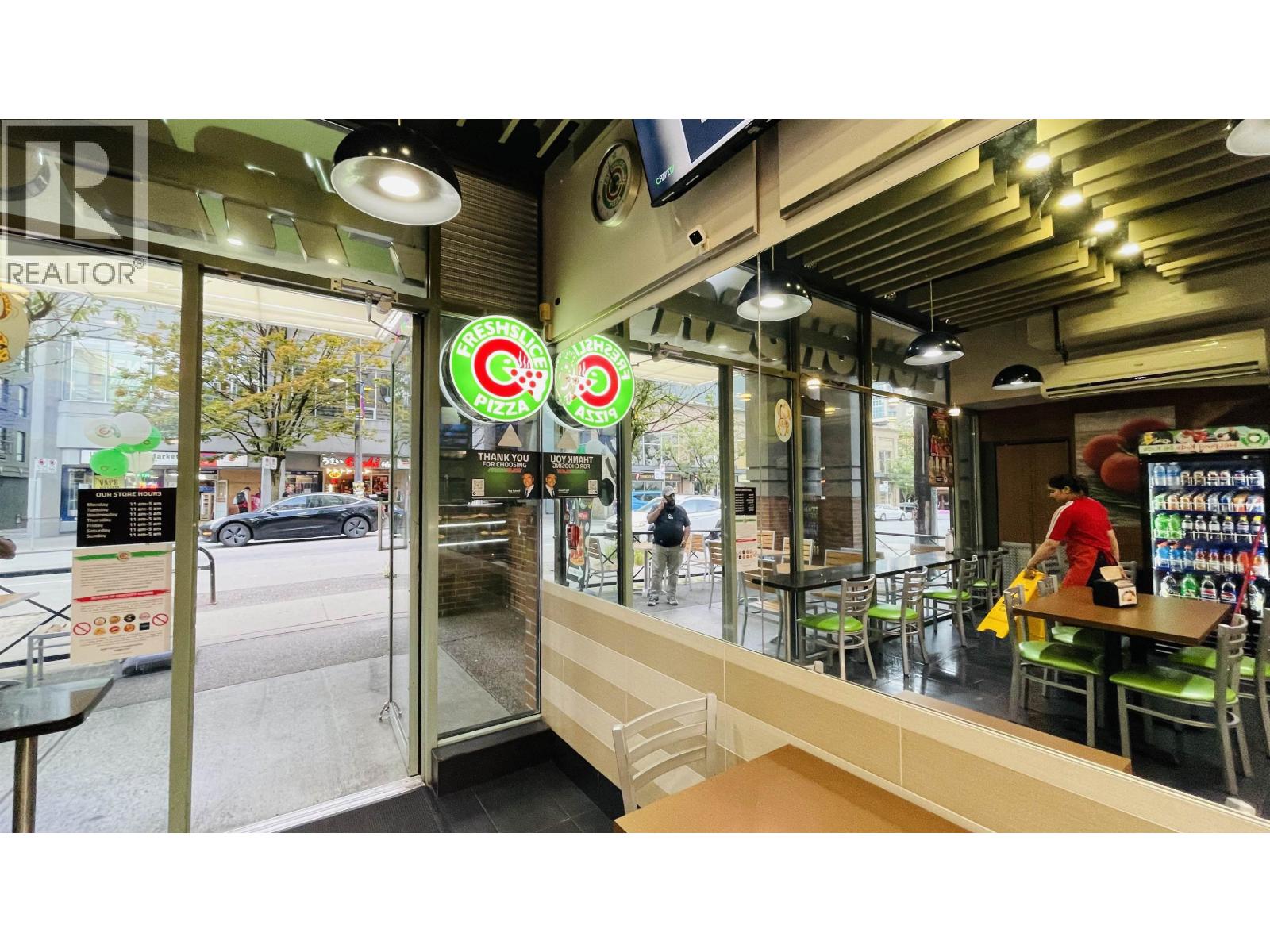 First Time on the Market! Exceptional high-exposure retail space located at the NE corner of Howe St. & Davie St. in the heart of Vancouver's lively Granville Entertainment District and Davie Village. This vibrant West End neighbourhood is known for its energetic atmosphere, diverse restaurants, cafés, grocery stores, and everyday conveniences: the renowned Yaletown district, offering some of Vancouver's top-rated dining, boutique shopping, and easy access to the Roundhouse SkyTrain Station, connecting you seamlessly to the entire Metro Vancouver region. It is also within walking distance of Downtown Vancouver's core shopping area and the CBC district.The space is currently leased to Freshslice Pizza, with a five-year lease in place at premium rates until January 31, 2028 & an option to renew for an additional five years at increased rent through 2033.This is a rare opportunity to own a prime, high-visibility retail storefront in one of the most sought-after urban locations. One LCP parking included. (id:48970) Show More