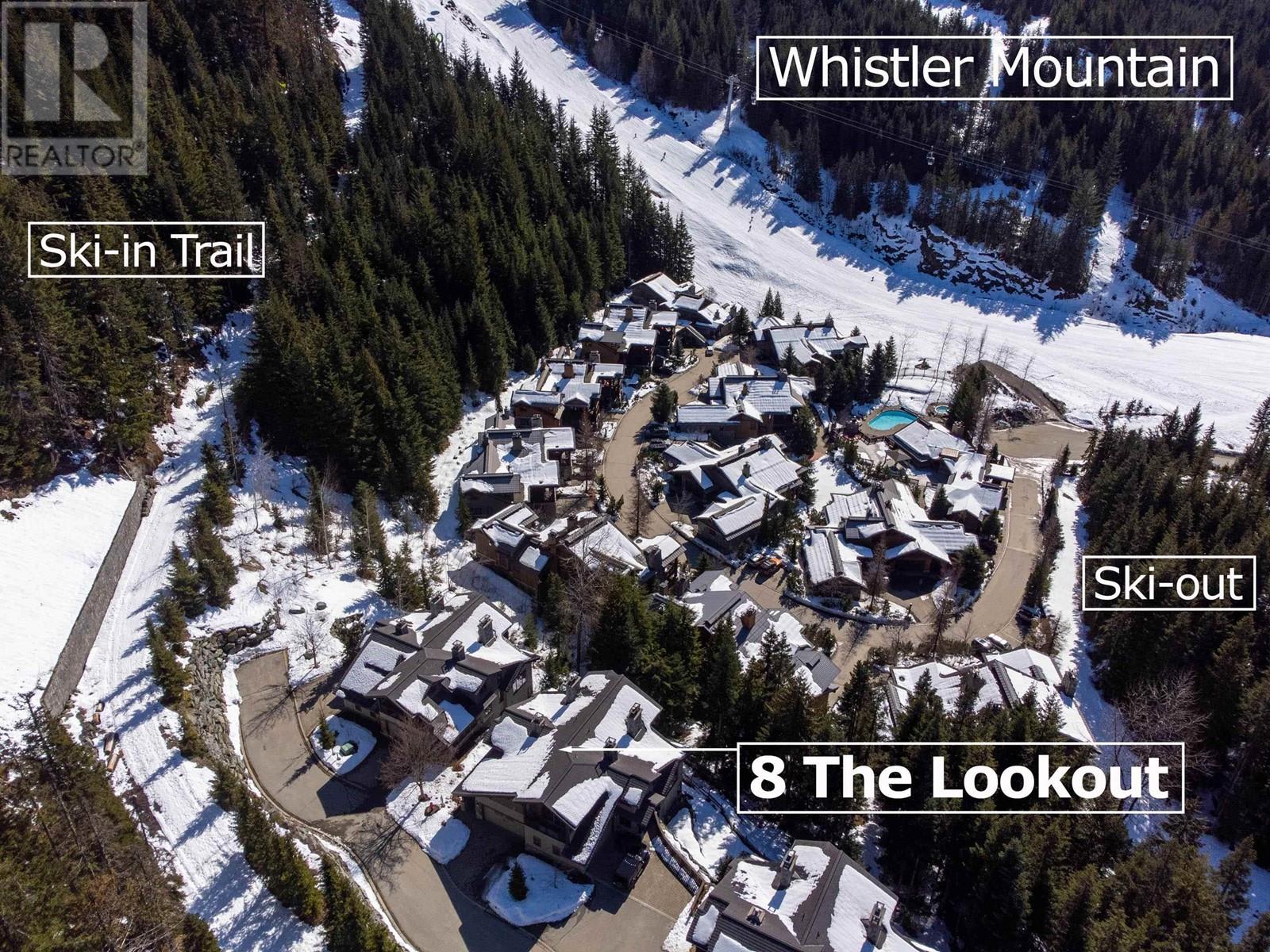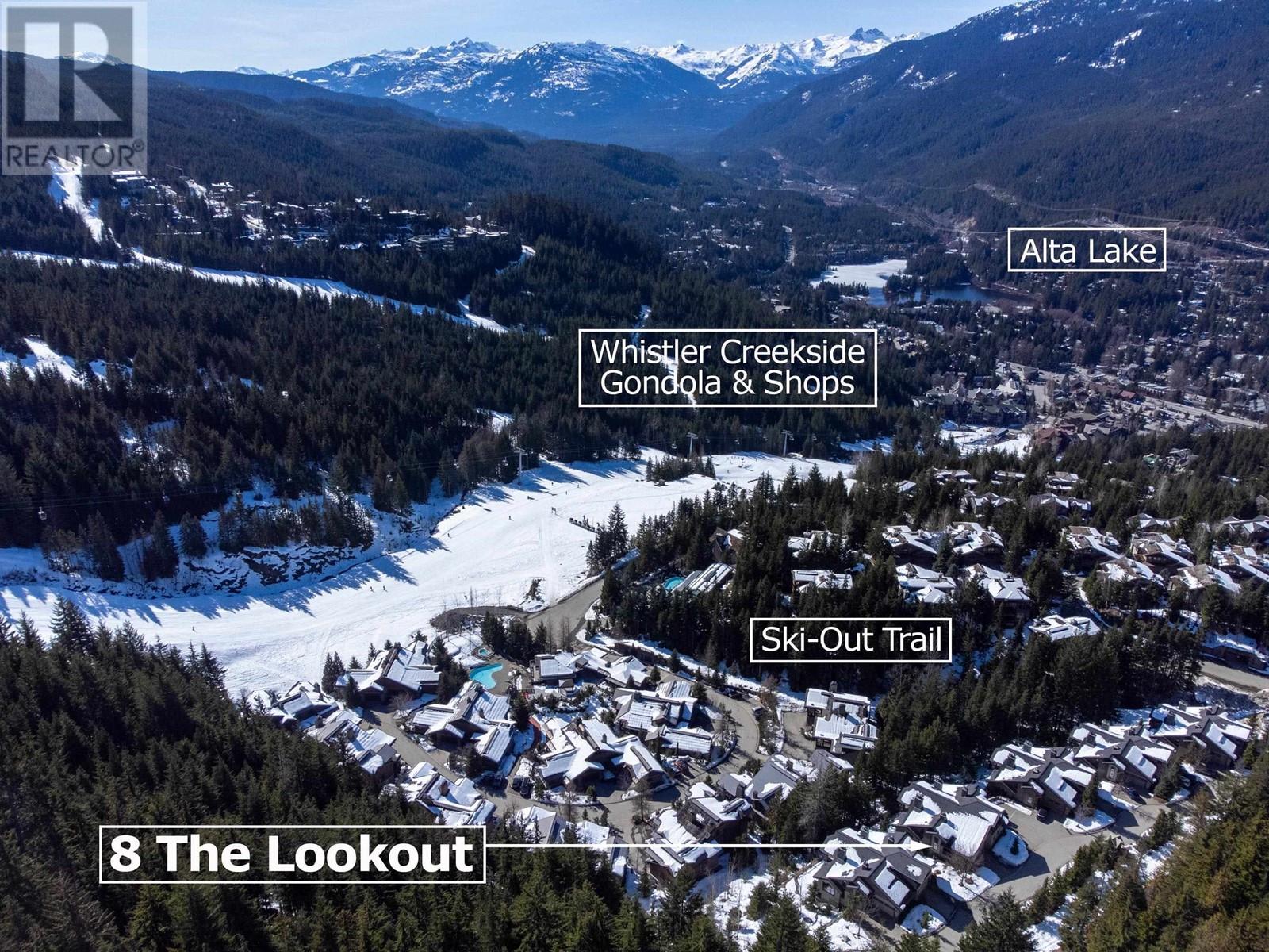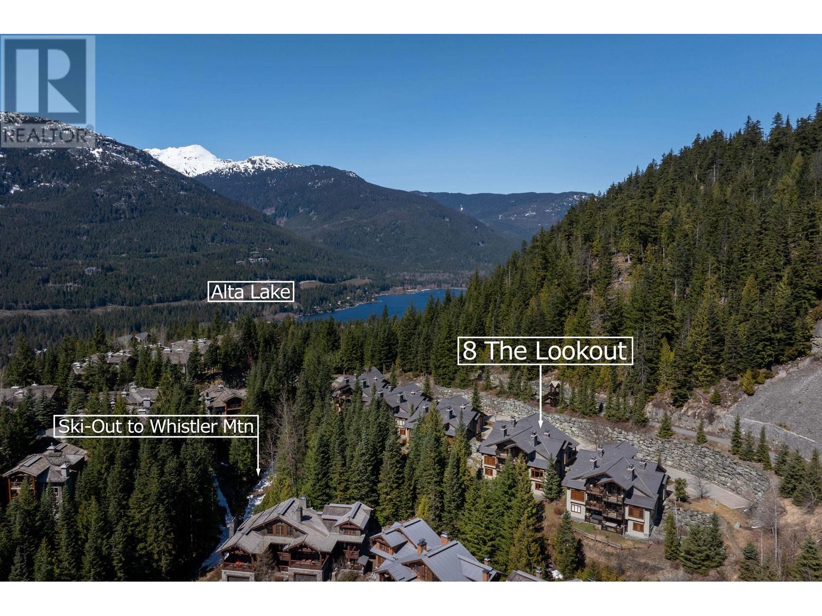 Perched on the side of Whistler Mountain, this stunning 4-bedroom, 2.5-bathroom townhome at 8 Lookout at Taluswood offers true ski-in/ski-out access and sweeping views of Whistler's peak. Featuring an open-concept main level with vaulted ceilings, rich hardwood floors, heated tile in key areas, and a gourmet kitchen with granite countertops, a Thermador gas range, and Sub-Zero fridge. Ideal for entertaining, the home boasts three private decks-including one with a private hot tub for relaxing apres-ski. The spacious primary suite includes a walk-in closet, luxurious soaker tub, and glass shower. With unlimited owner use in a nightly rental zone, this property offers the flexibility to enjoy personally or generate rental revenue. Experience elevated mountain living at its finest. No GST. (id:48970) Show More
