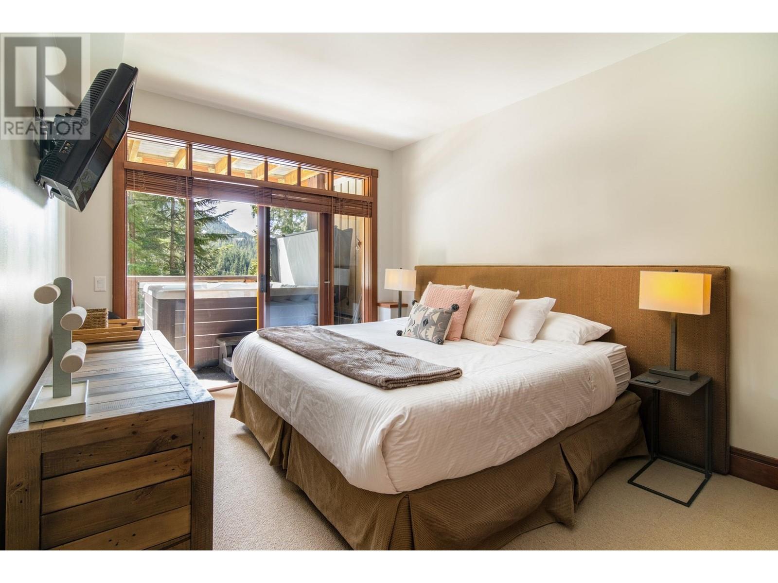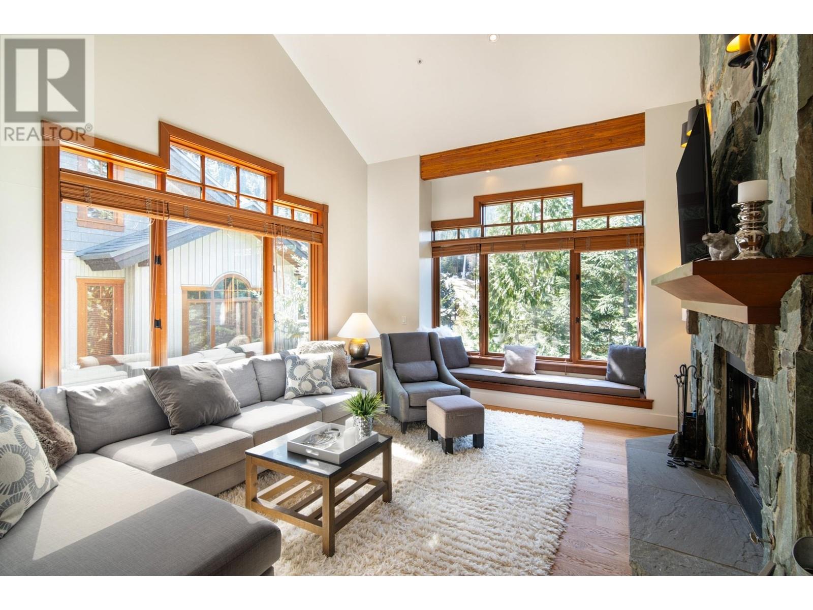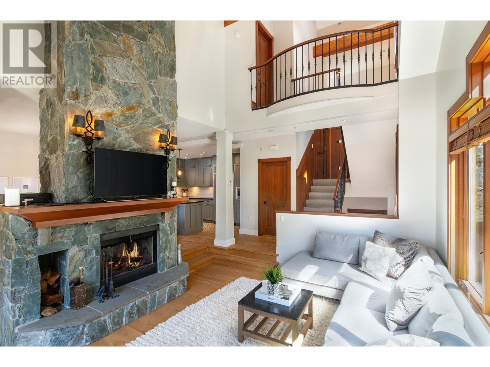 Perched on the side of Whistler Mountain, this stunning 4-bedroom, 2.5-bathroom townhome at 8 Lookout at Taluswood offers true ski-in/ski-out access and sweeping views of Whistler's peak. Featuring an open-concept main level with vaulted ceilings, rich hardwood floors, heated tile in key areas, and a gourmet kitchen with granite countertops, a Thermador gas range, and Sub-Zero fridge. Ideal for entertaining, the home boasts three private decks-including one with a private hot tub for relaxing apres-ski. The spacious primary suite includes a walk-in closet, luxurious soaker tub, and glass shower. With unlimited owner use in a nightly rental zone, this property offers the flexibility to enjoy personally or generate rental revenue. Experience elevated mountain living at its finest. No GST. (id:48970) Show More