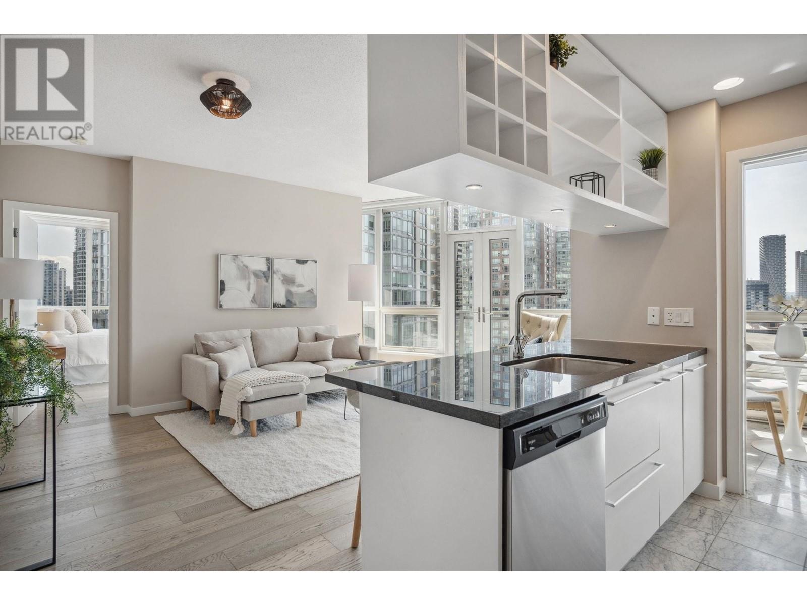 This GORGEOUS 1 BED+DEN+FLEX offers relaxed living in the heart of the city. This larger floor plan with over 725 SF & laminate thru-out offers a gourmet kitchen with full size appliances, gas cooking, breakfast bar & lots of cabinetry for your culinary tools. The spacious livingroom opens to a south facing BALCONY with iconic cityscape views. Versatile DEN can be a formal dining area or work from home office & FLEX is perfect as yoga space or to organize your extra items. Enjoy downtime in a large bedrm with great closet space & spa inspired marble bath with vanity storage & deep soaker tub. Amenities inc everyday concierge, gym, party lounge with rooftop terrace & 4 high speed elevators. Unbeatable 100 WALKSCORE in the shopping, dining, entertainment & tech HUB of downtown. Perfect home in the city! (id:48970) Show More