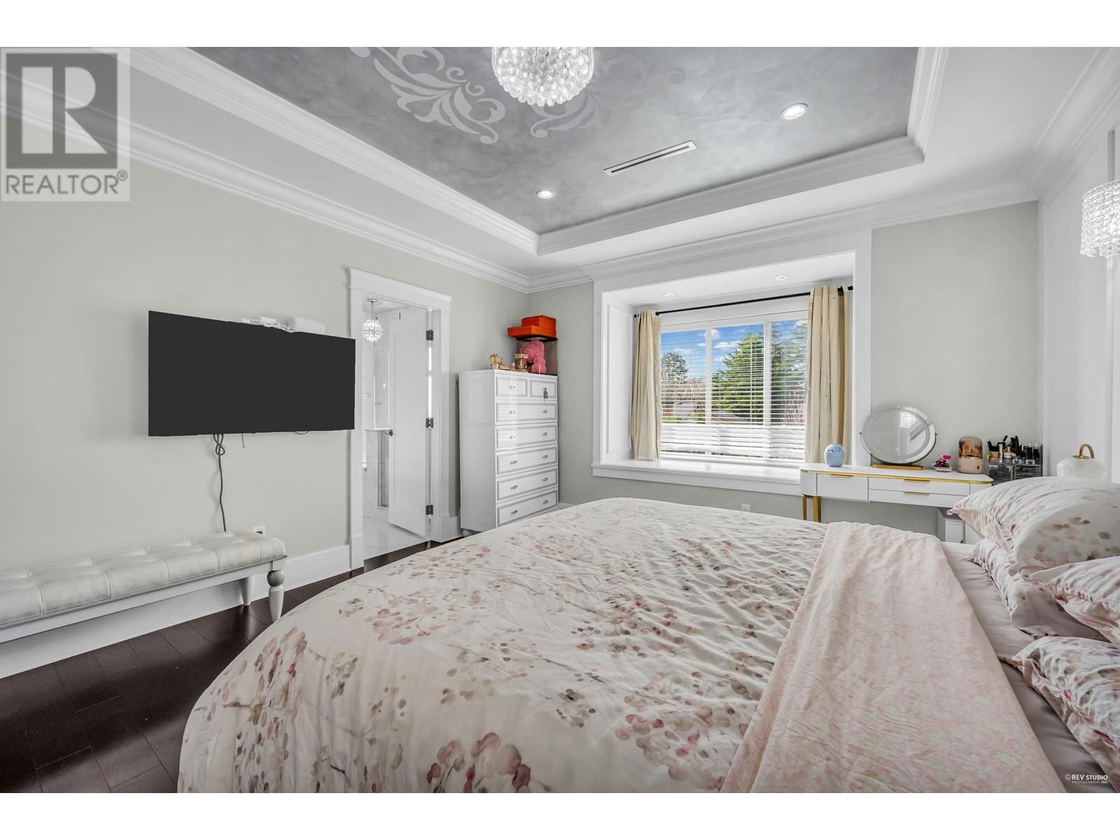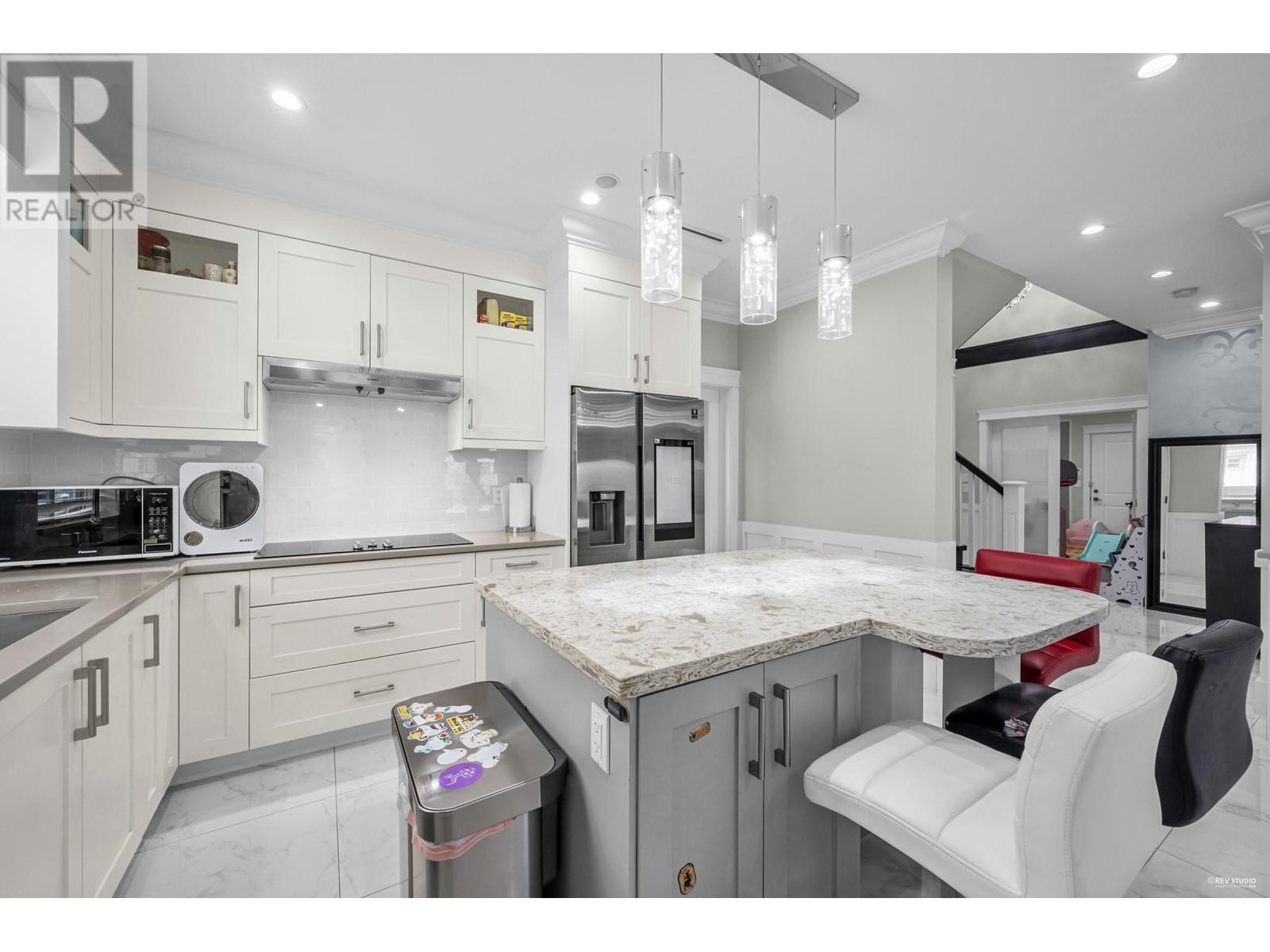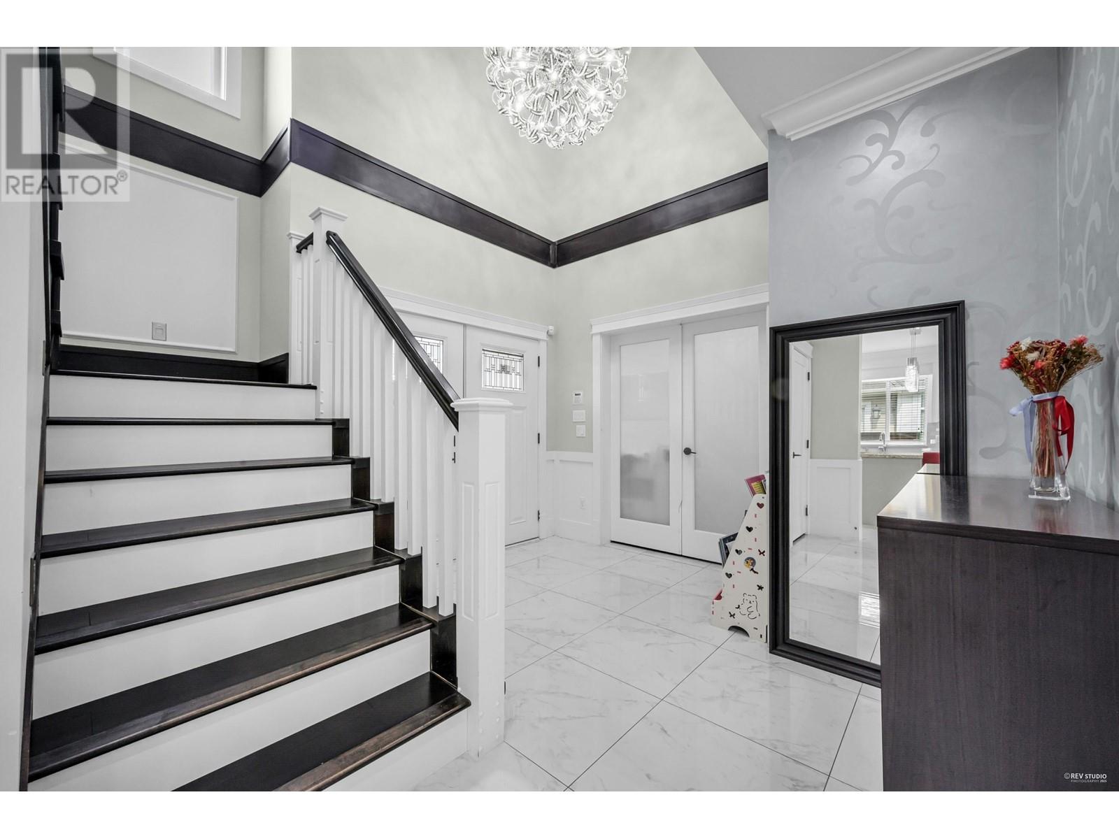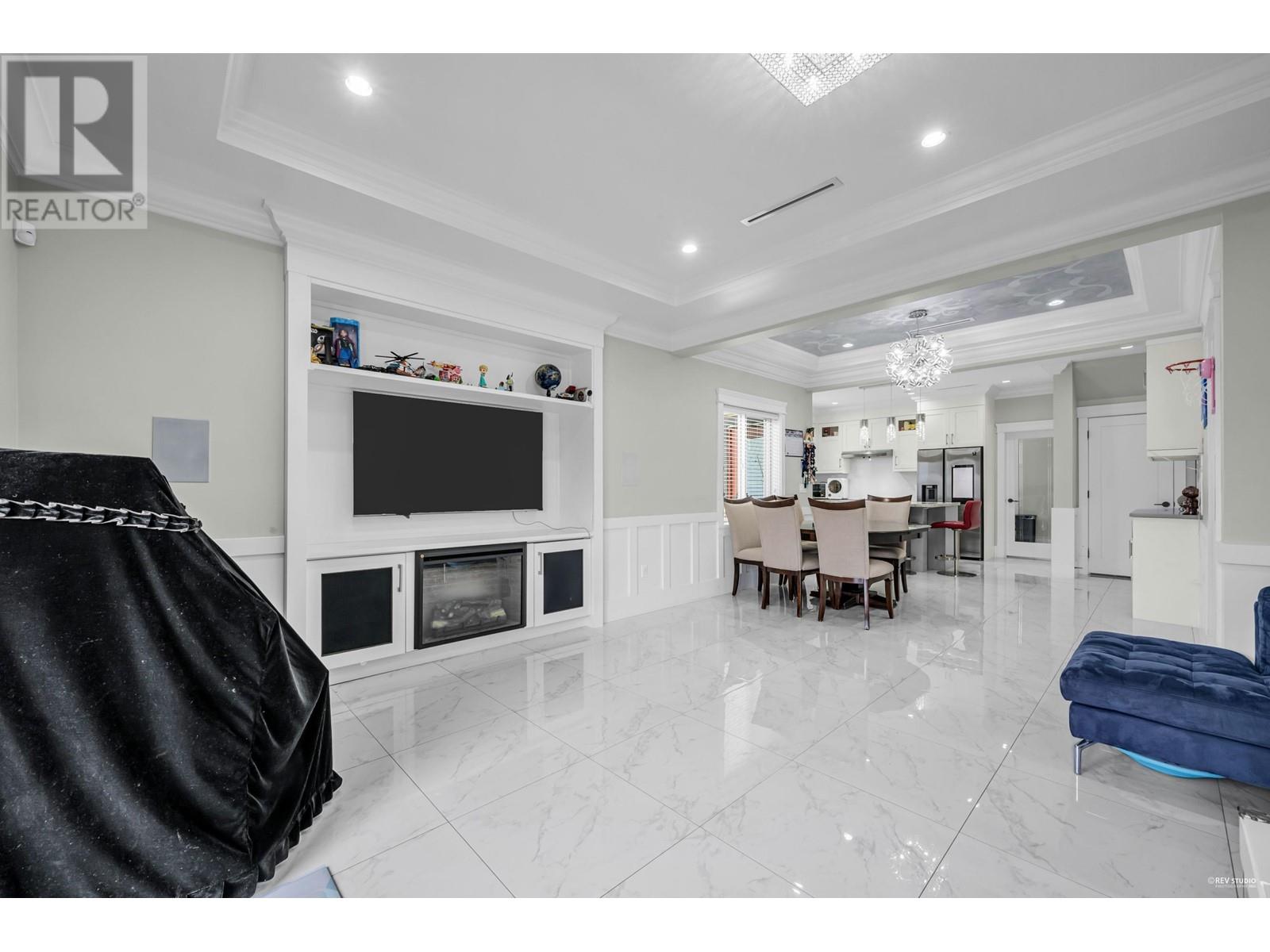 Locate at Woodwards community. This exquisite home boasts a thoughtfully designed open floor plan, featuring five bedrooms, each with its own en-suite. Highlights include a wok kitchen, a media/living room, and a spacious great room ideal for entertaining. Elegantly crafted with designer colors and extensive crown molding throughout, the home exudes sophistication. The expansive gourmet kitchen and wok kitchen are equipped with premium stainless steel Bosch appliances, complemented by maple cabinetry and quartz countertops. The spa-like bathrooms showcase high-end fixtures, including a luxurious five-piece master en-suite. In-floor radiant heating, air conditioning, and an HRV system ensure year-round comfort. School catchment: Blundell Elementary, Steveston-London Secondary (id:48970) Show More