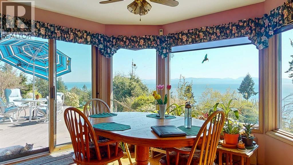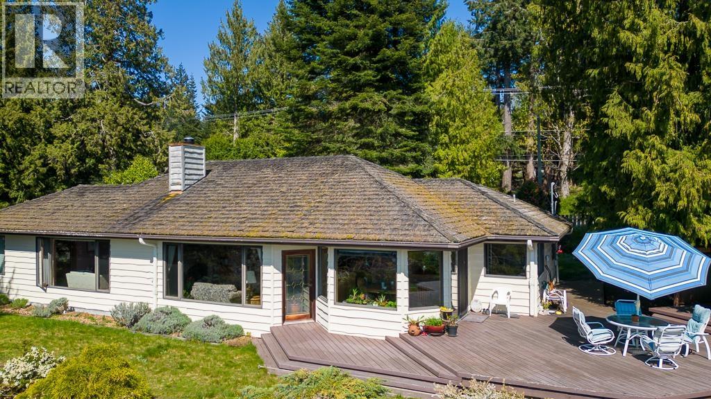 Outstanding 180 degree Ocean Views from this lovely, well built rancher! Priced well BELOW assessed value! First time available on the market! High bank, waterfront with over 2 acres, offers some serious privacy as well as being zoned for a 2nd dwelling. Decent sized detached studio with attached greenhouse could be a workshop, office, guest cottage? Bring your ideas. Double detached garage too. Original solid oak, hardwood flooring, huge windows to let in loads of sunshine, 2 generous sized bedrooms, extensive wooden deck for entertaining, soaking up the sun, or just enjoying the sunsets/sunrises with your favourite beverage. A beautiful home with exceptional views and privacy in a quiet neighbourhood. Call your Realtor for a private tour! (id:48970) Show More