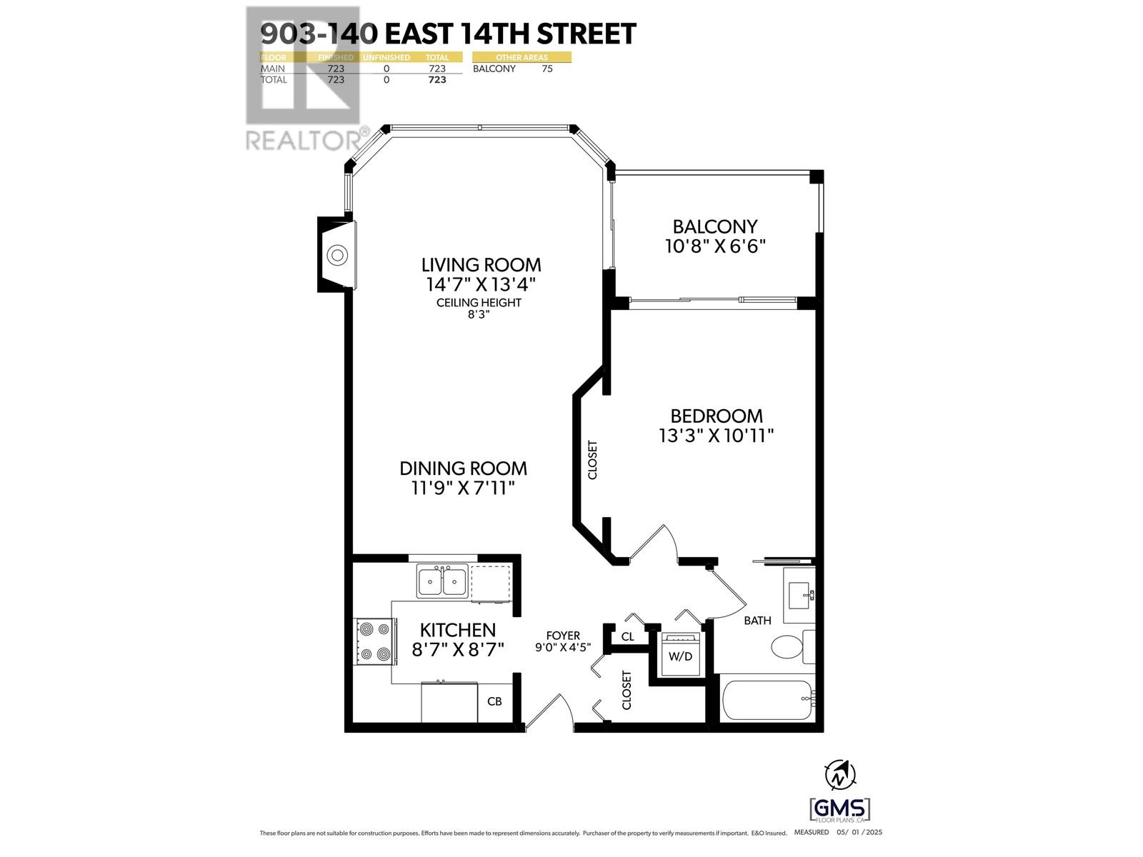 - Area 723 sq ft