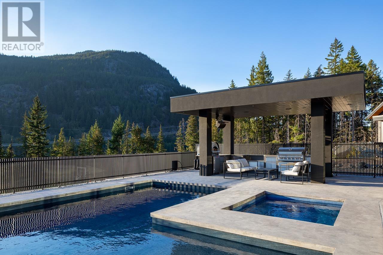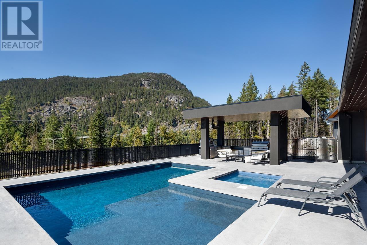 Perched on the scenic plateau of Whistler's WedgeWoods estate, this property offers breathtaking views, modern luxury, and a wealth of in-home amenities perfect for hosting and relaxation. The contemporary design floods the main living space with natural light, seamlessly blending indoor and outdoor living with features like a heated pool, hot tub, covered outdoor kitchen, and private sports court. High-end finishes abound, including custom millwork, an entertainment-focused level, and a heated driveway. Located just 12 minutes north of Whistler Village, this home ensures a hassle-free commute and access to exclusive neighborhood amenities, such as a gym, tennis courts, and pickleball courts. Zoning allows short-term rentals, it's an ideal retreat or investment. (id:48970) Show More