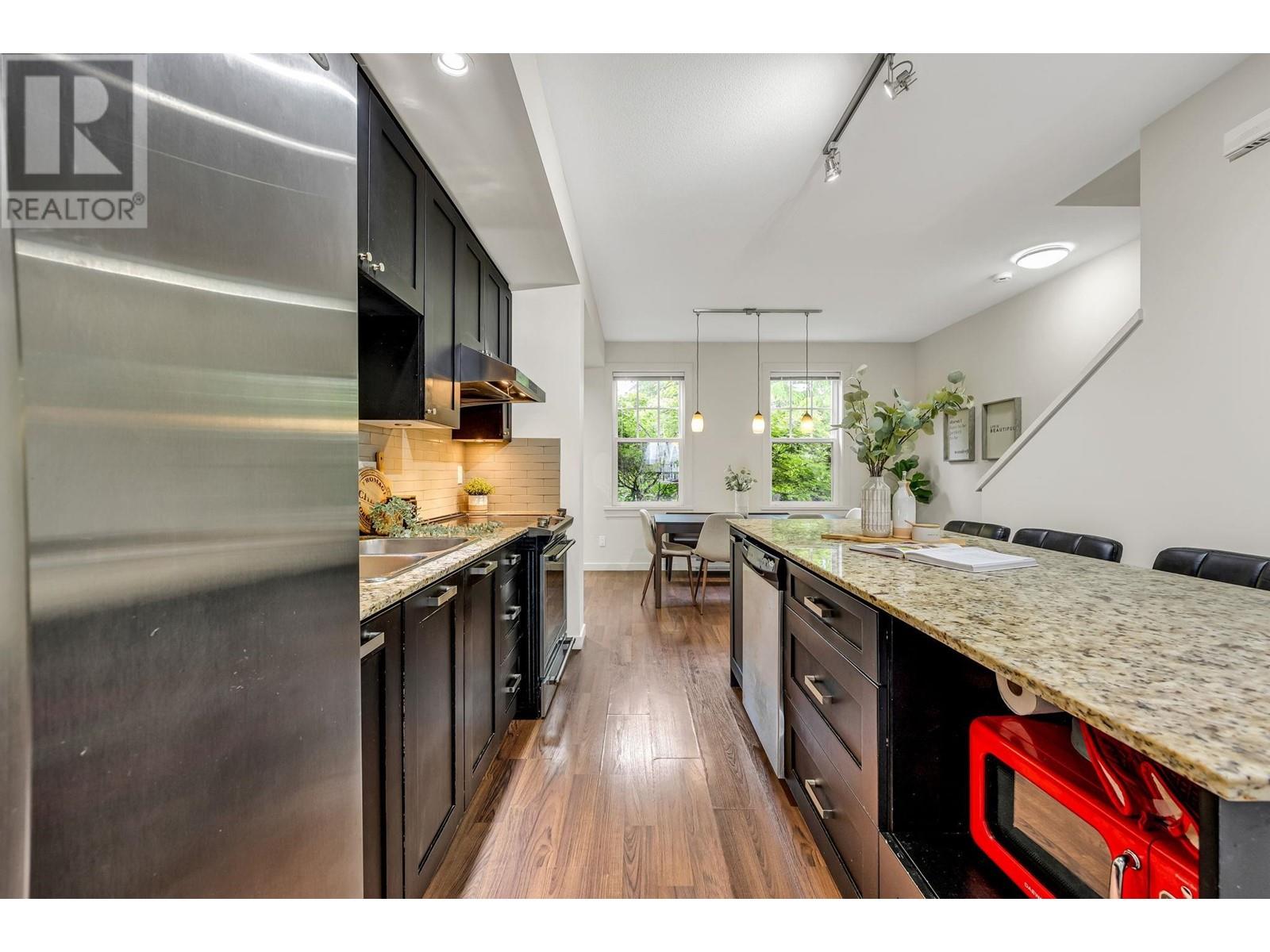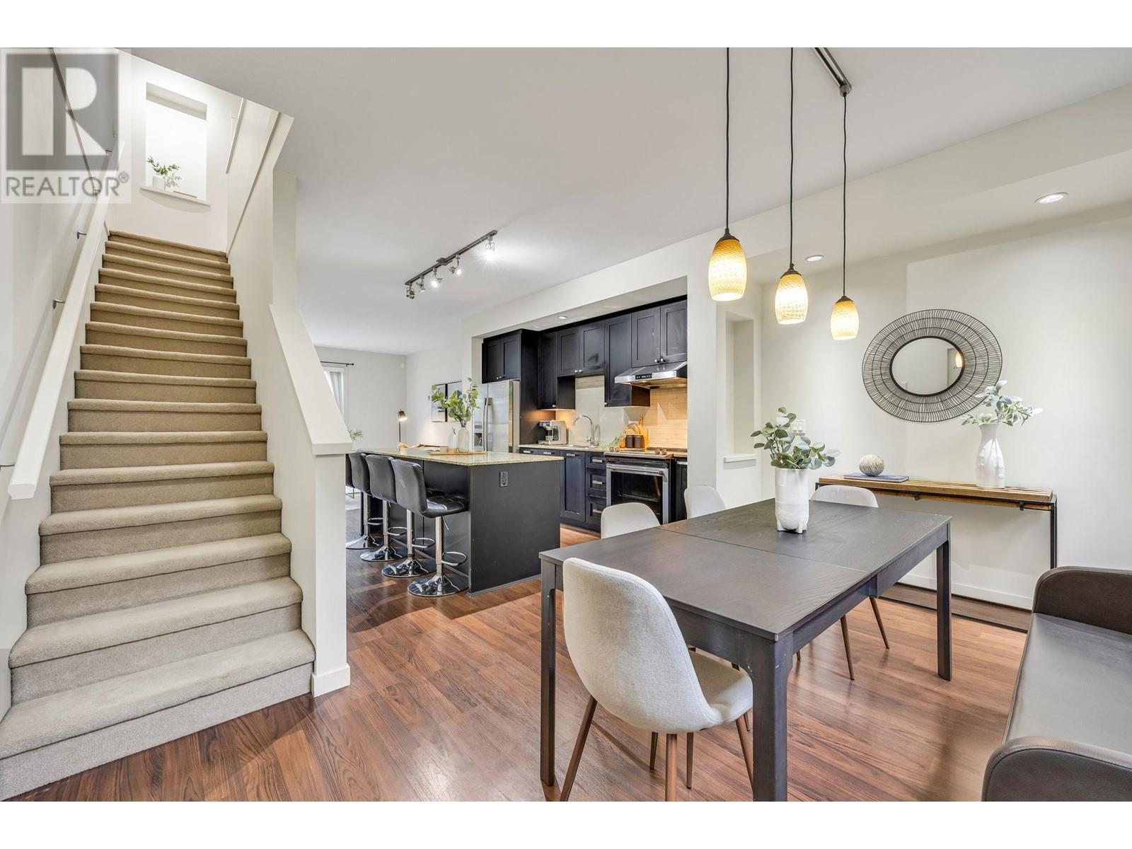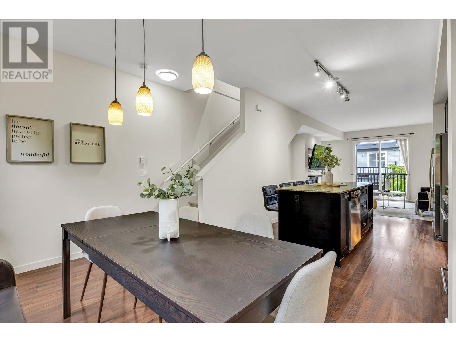This 3 bed, 2 bath Mosaic townhome offers 1,300+ sqft of efficient space with 9´ ceilings, a freshly painted interior, and thoughtful updates throughout. The main level features a massive island, updated appliances, deep cabinets, and room to seat six. Natural light flows through both ends, with a deck for your sectional and BBQ, plus a fenced front yard perfect for coffee or letting the dog out. Upstairs, enjoy a reworked double vanity ensuite and custom primary closet. Full garage plus a driveway fits two cars-rare in a townhome. Visitor parking is easy. Pet-friendly, short-term rental approved (per city bylaws), low strata fees, and great schools nearby. This one checks every box. (id:48970) Show More