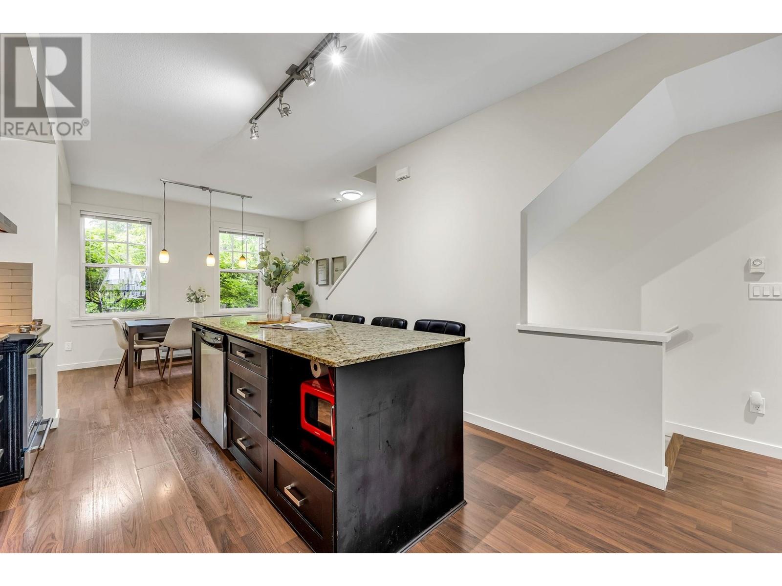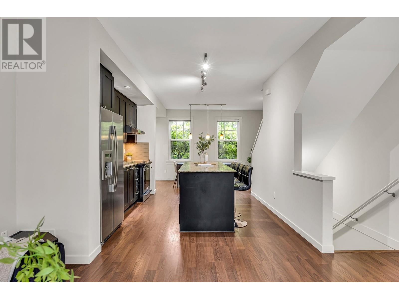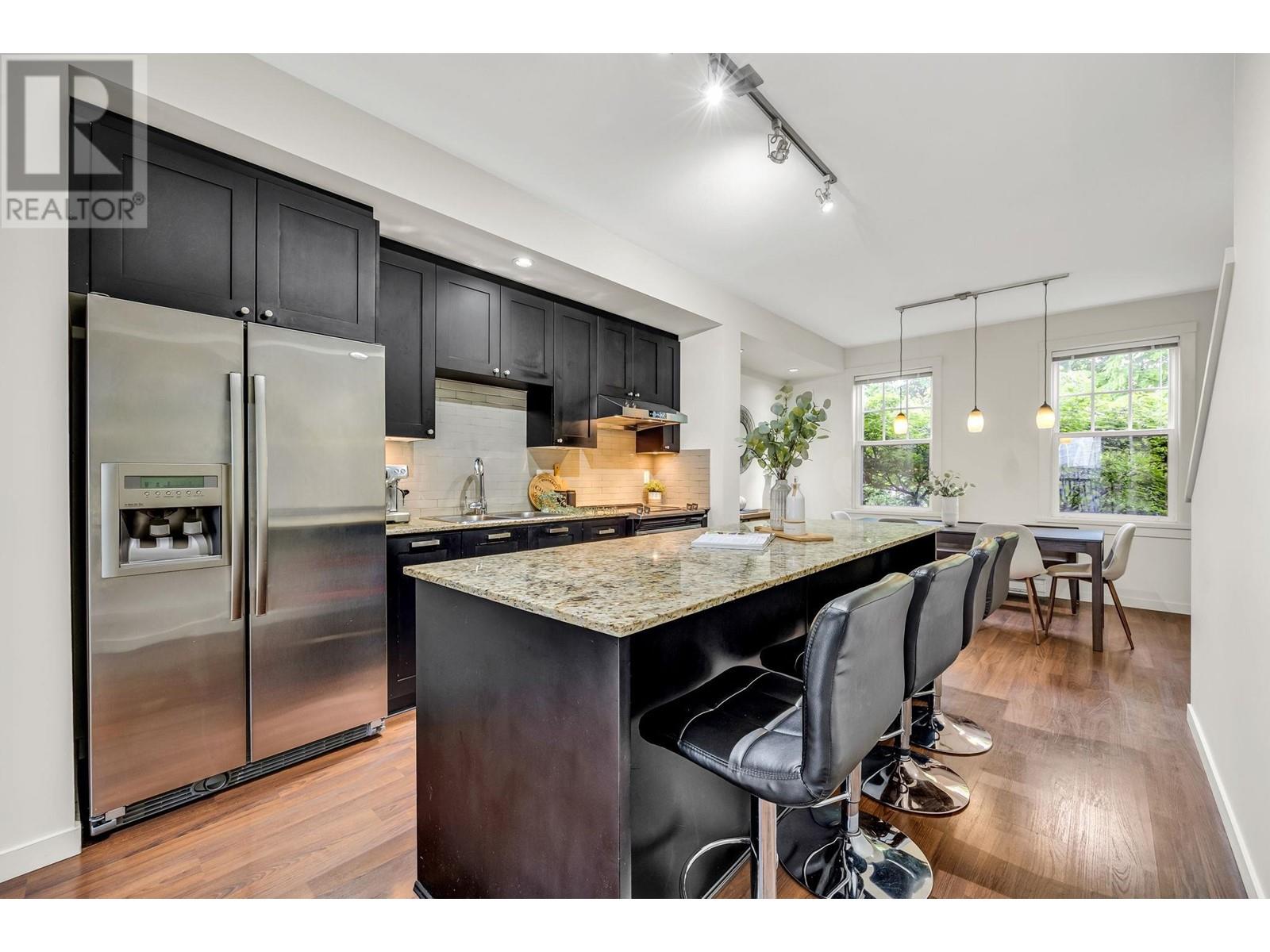 This 3 bed, 2 bath Mosaic townhome offers 1,300+ sqft of efficient space with 9´ ceilings, a freshly painted interior, and thoughtful updates throughout. The main level features a massive island, updated appliances, deep cabinets, and room to seat six. Natural light flows through both ends, with a deck for your sectional and BBQ, plus a fenced front yard perfect for coffee or letting the dog out. Upstairs, enjoy a reworked double vanity ensuite and custom primary closet. Full garage plus a driveway fits two cars-rare in a townhome. Visitor parking is easy. Pet-friendly, short-term rental approved (per city bylaws), low strata fees, and great schools nearby. This one checks every box. (id:48970) Show More