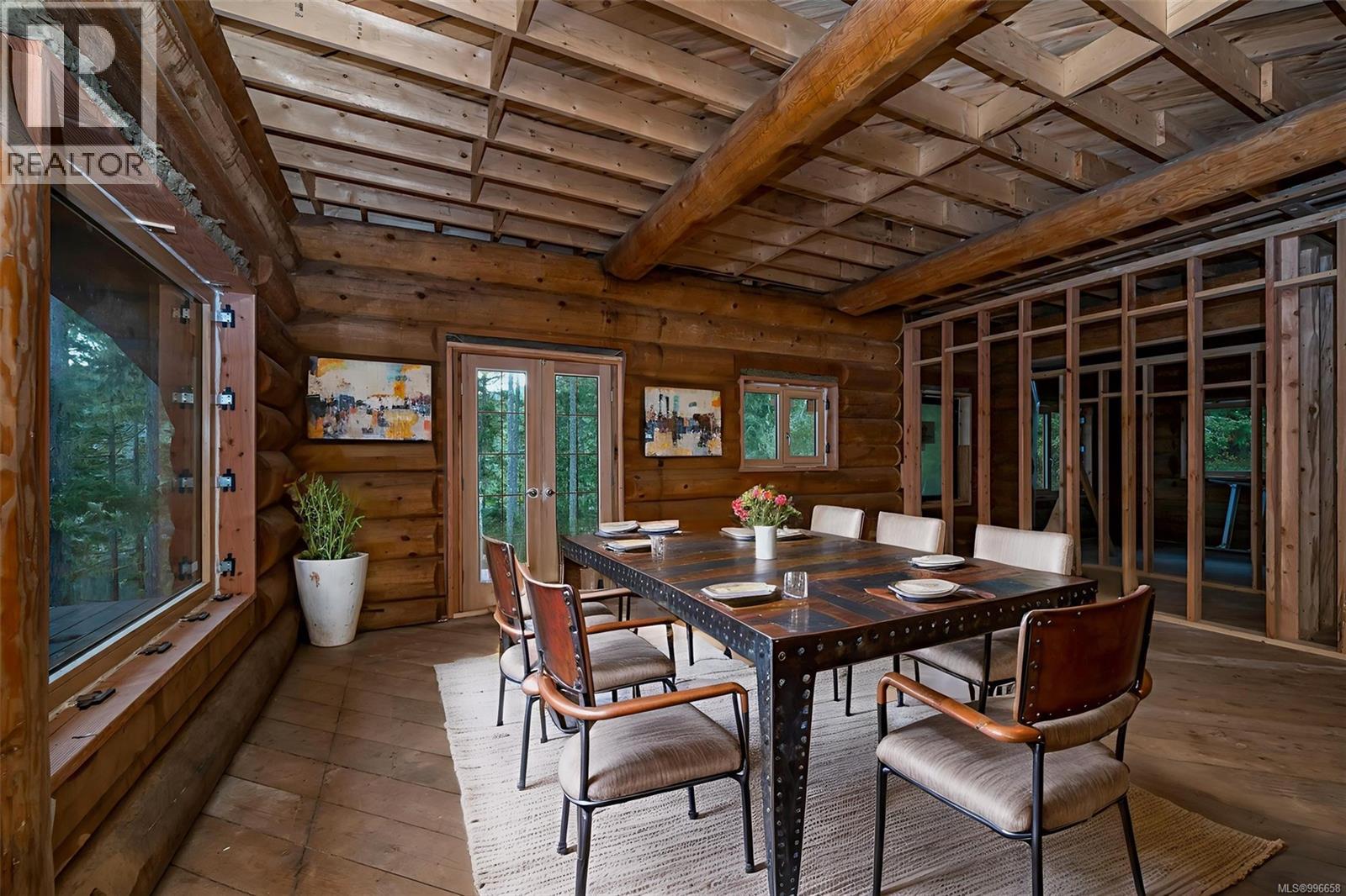 A Rare Opportunity – Oceanfront Retreat with Untouched Beauty! A dream home built with superb craftsmanship from select BC Douglas Fir on a very private gorgeous 5-acre lot with a walk-on beach and a full access to 65-acre common park-like old forest shared with six other strata owners.To be finished (with occupancy permit and New Home Warranty) a 4-5 bedroom 3-bathroom custom log home (no expense spared) with wrap-around deck sits perched on a rocky ledge, erfectlypositioned for sweeping ocean views, mountain vistas, and awe-inspiring sunsets. All hardwork done, finish the home your way to suit your lifestyle.The property also allows for a second house for your extended family, guests or inlaws. A sunny open area for the garden, a place for a sheltered dock for your boat, a 'meditation point' with an almost 360 degree views of Sooke basin, your own forest trails at your doorsteps, complete privacy and protection - what an exquisite and serene place to bring up your children or to enjoy your active retirement years! The Commons offer forested trails, a man-made pond which can be used for swimming or/and stocked with carp, and a seasonal stream that brings movement and serenity. The pond also serves as a water source with fire hydrant access. There is a shared strata equipment (backhoe, woodchipper) that can be used as needed and a supportive nature-oriented community of like-minded six strata co-owners whose families have been living there for over 60 years. Strata-owned private power line and road access are maintained year-round by a rotating manager and service crew. Included in the sale: 1/7 ownership of a separate 10-acre fee-simple lot—a reserve for emergency funding or potential income (logging or tree farming). Secluded yet accessible—just 45 mins to downtown, 15 mins to the amenities of Sooke, 20 mins to Langford and 30 mins to Victoria General Hospital. Motto: Protect. Enhance. Pass It On. Step into a legacy built on vision, community, and care. (id:48970) Show More