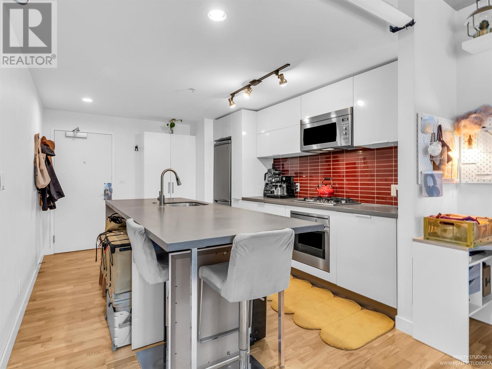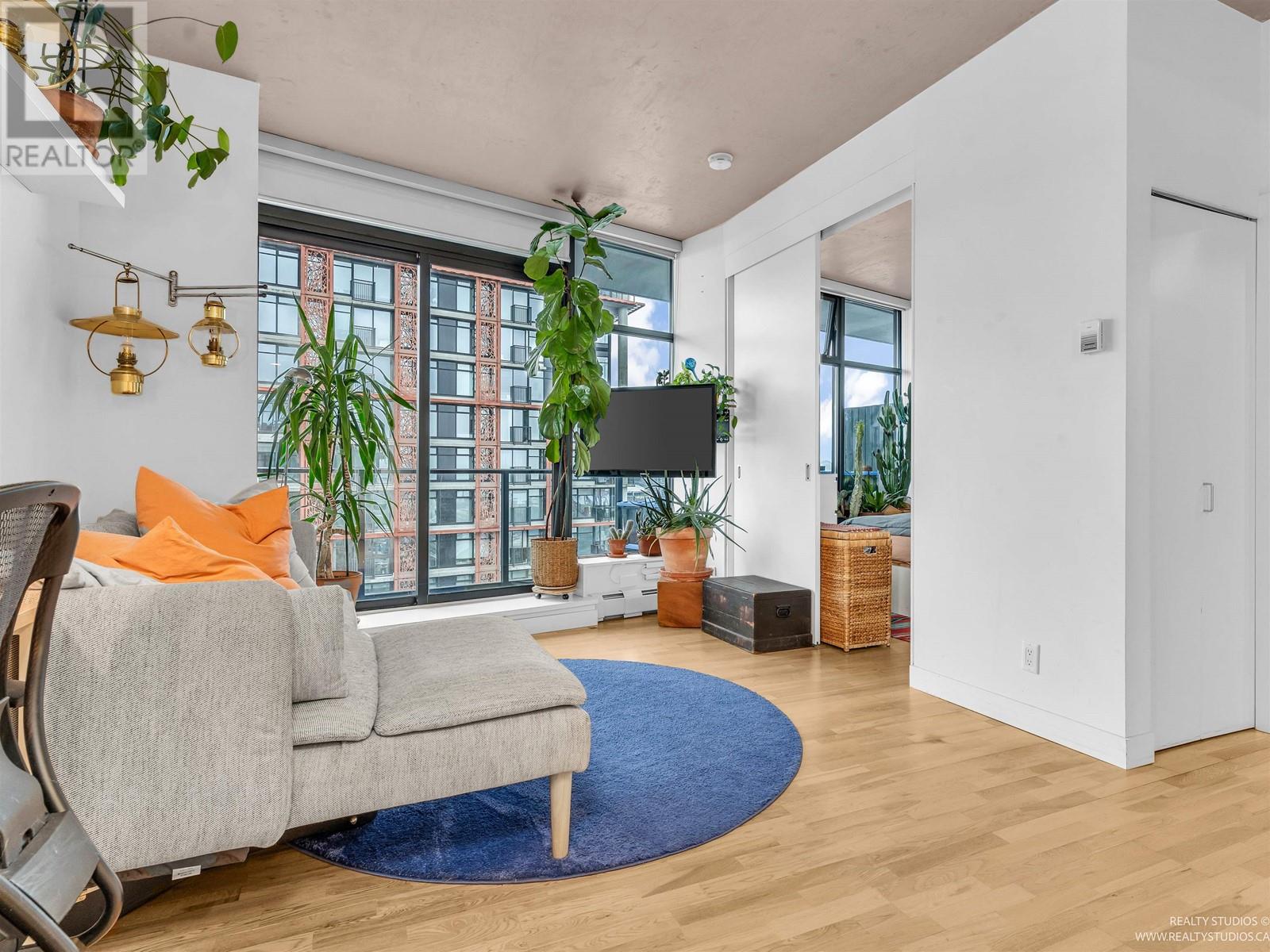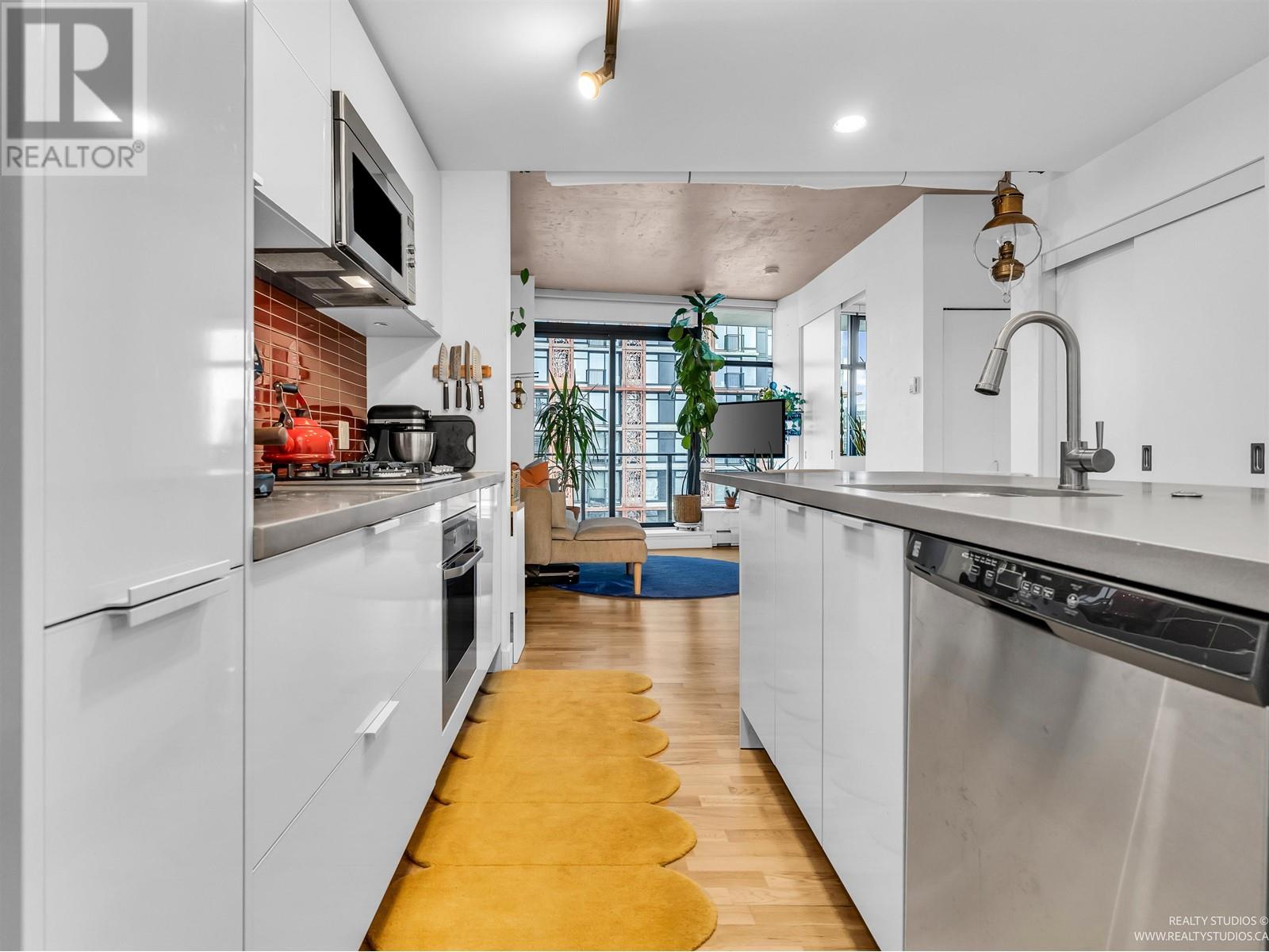 Penthouse level suite with sweeping views of the skyline, water and North Shore mountains. Enjoy the scenery from every vantage point inside or step out onto your PATIO that extends the length of the suite. The Interior gives a contemporary feel with polished concrete ceilings, hardwood floors and open concept kitchen with island, white high gloss cabinetry and st/st appliances. Perfect corner nook for home office space, in suite laundry and exclusive access to luxury amenities, including a state of the art fitness centre, rooftop lounge with W hot tub & concierge service. Conveniently located in Gastown, steps to the city's best shopping and restaurants, easy access to transit & skytrain. Solutions available for parking without having to walk outside. (id:48970) Show More