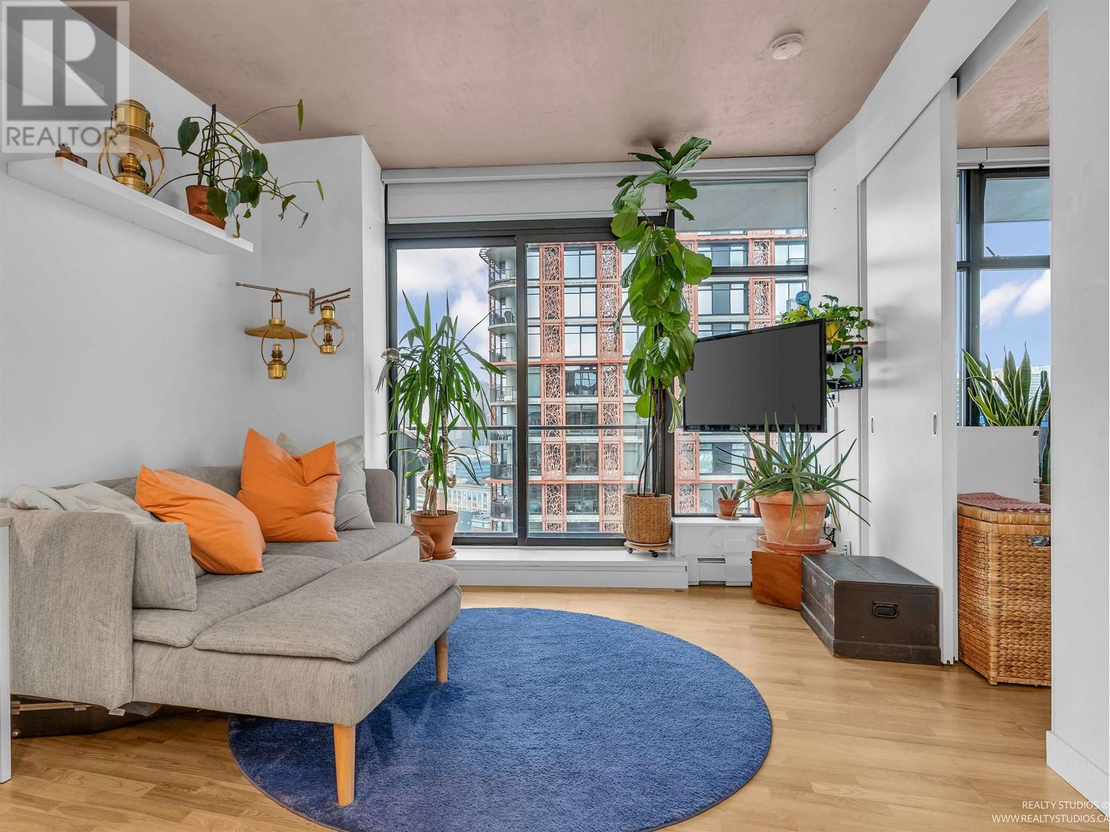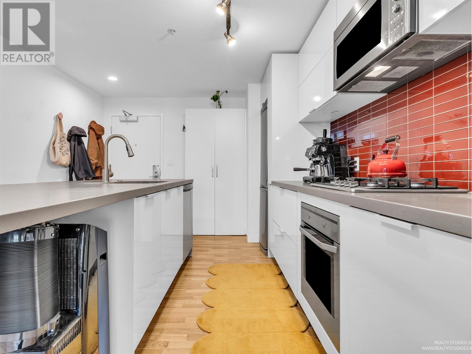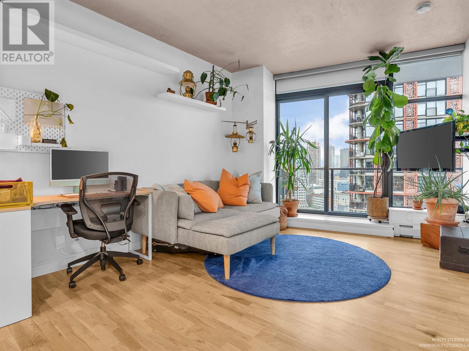 Penthouse level suite with sweeping views of the skyline, water and North Shore mountains. Enjoy the scenery from every vantage point inside or step out onto your PATIO that extends the length of the suite. The Interior gives a contemporary feel with polished concrete ceilings, hardwood floors and open concept kitchen with island, white high gloss cabinetry and st/st appliances. Perfect corner nook for home office space, in suite laundry and exclusive access to luxury amenities, including a state of the art fitness centre, rooftop lounge with W hot tub & concierge service. Conveniently located in Gastown, steps to the city's best shopping and restaurants, easy access to transit & skytrain. Solutions available for parking without having to walk outside. (id:48970) Show More