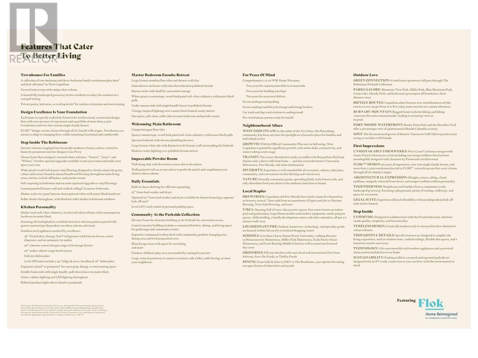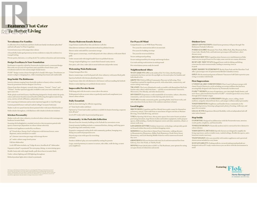 Assignment of Contract. Est. Completion July - Oct 2025. Introducing The Robinsons Parkside Collection, 3 bedroom 2.5 bathroom townhomes coming to West Coquitlam. 2 level interior space with total of 1,153 sqft + 115-137 exterior patio space. These homes feature plenty of space, kitchens to host, outdoor space. The Amenity building provides over 5600 SF of space for you to be you, including a rooftop deck perfect for summer BBQs, a yoga room, and plenty of outdoor spaces for you and the kids to enjoy. Nearby are parks, schools, shopping, recreation and it´s just a short walk to the Burquitlam Skytrain station. At Parkside Collection, you´ll fill your days with authentic hellos and bright memories. AC to the masterbedroom/kitchen/living level. 1 parking stalls (1 EV), and a storage locker. (id:48970) Show More